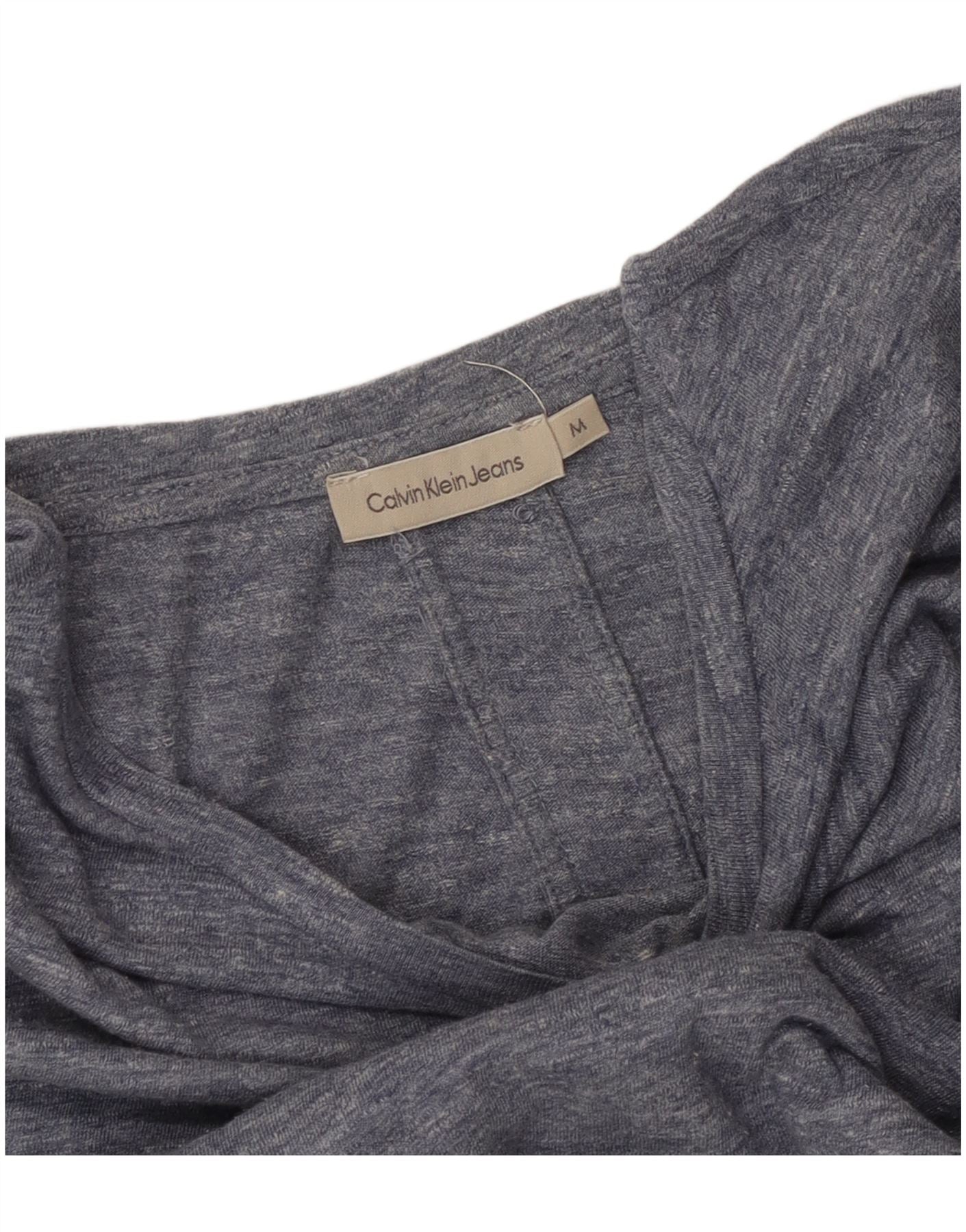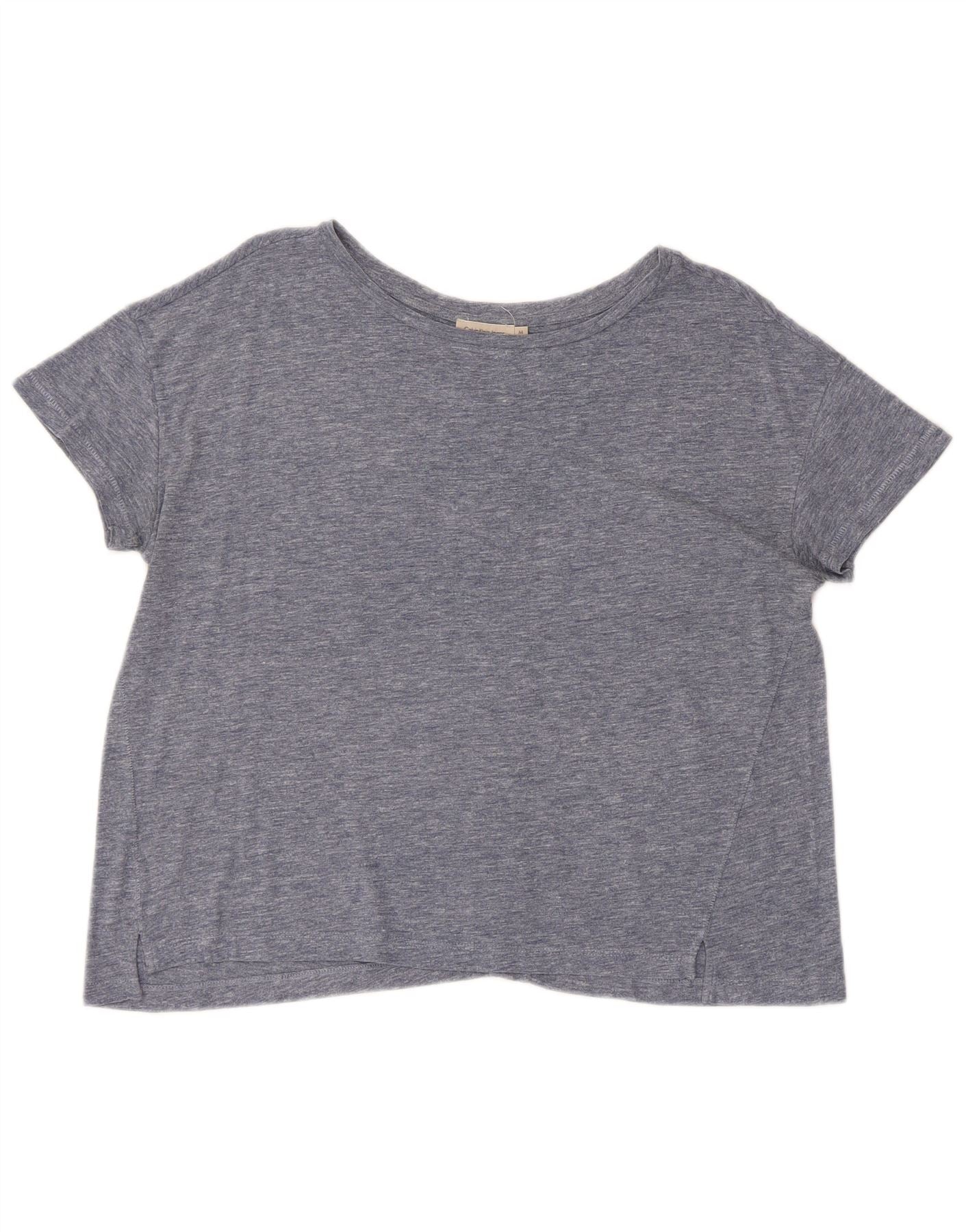 CALVIN KLEIN Womens Crop T-Shirt Top UK 14 Medium Blue Flecked