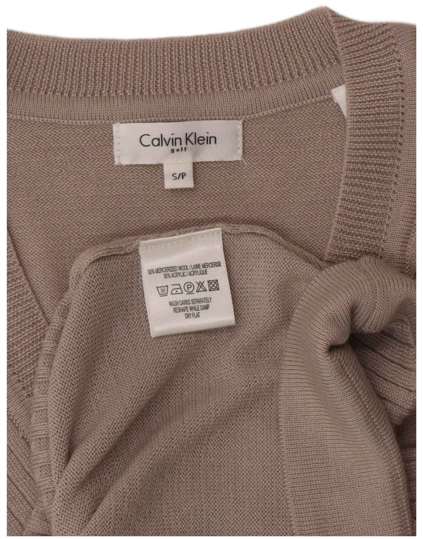 CALVIN KLEIN Damen Golf-Pullover mit V-Ausschnitt, Gr. 10, kleine beige Wolle