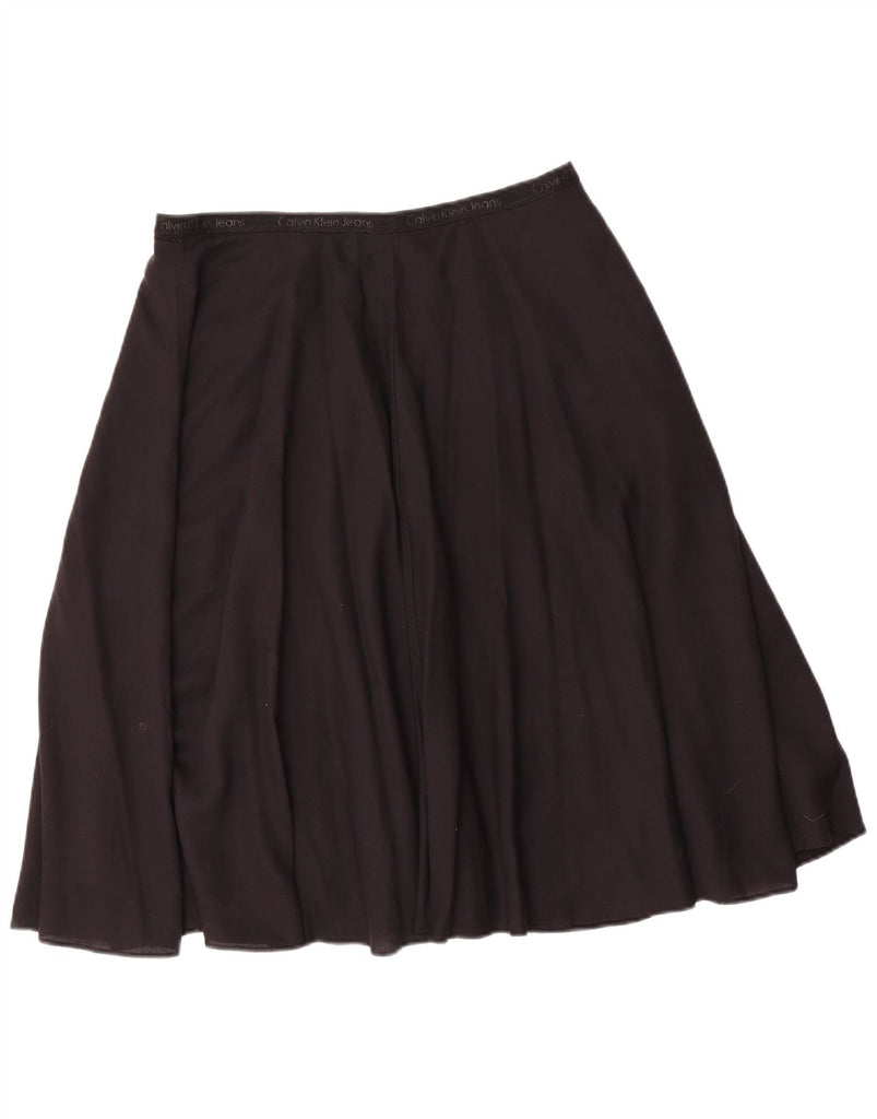 CALVIN KLEIN Womens Graphic Flared Skirt Large W32 Black Lyocell