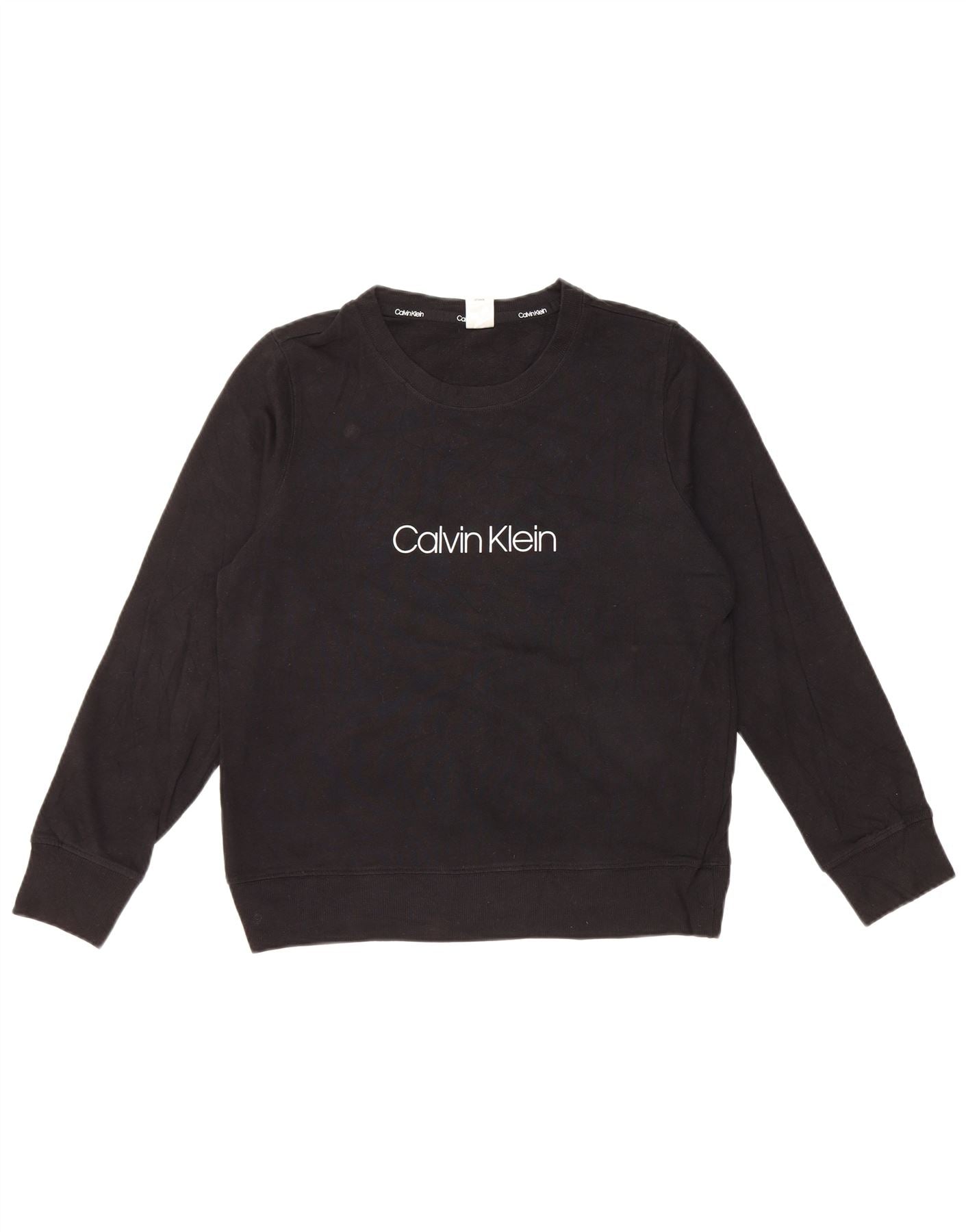 CALVIN KLEIN Damen Grafik-Sweatshirt-Pullover UK 14 Mittelschwarze Baumwolle