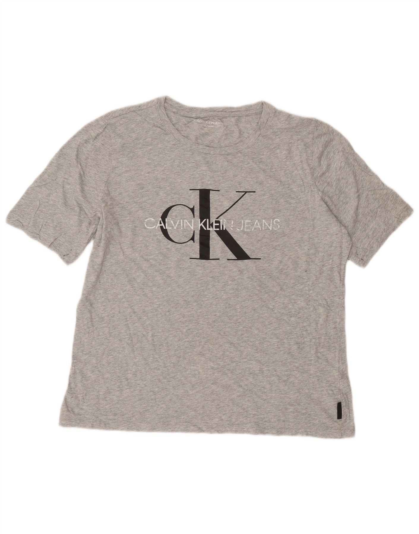 Calvin Klein Damen Grafik T-Shirt Top UK 18 XL Grau Baumwolle