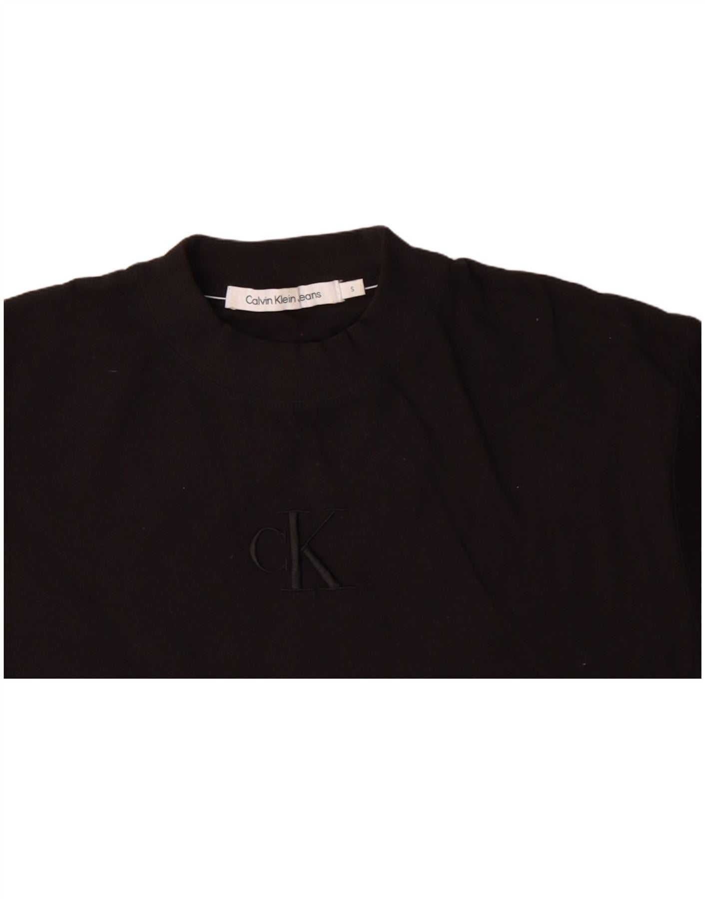 CALVIN KLEIN Damen Oversize Crop Graphic T-Shirt Top UK 10 Small Schwarz
