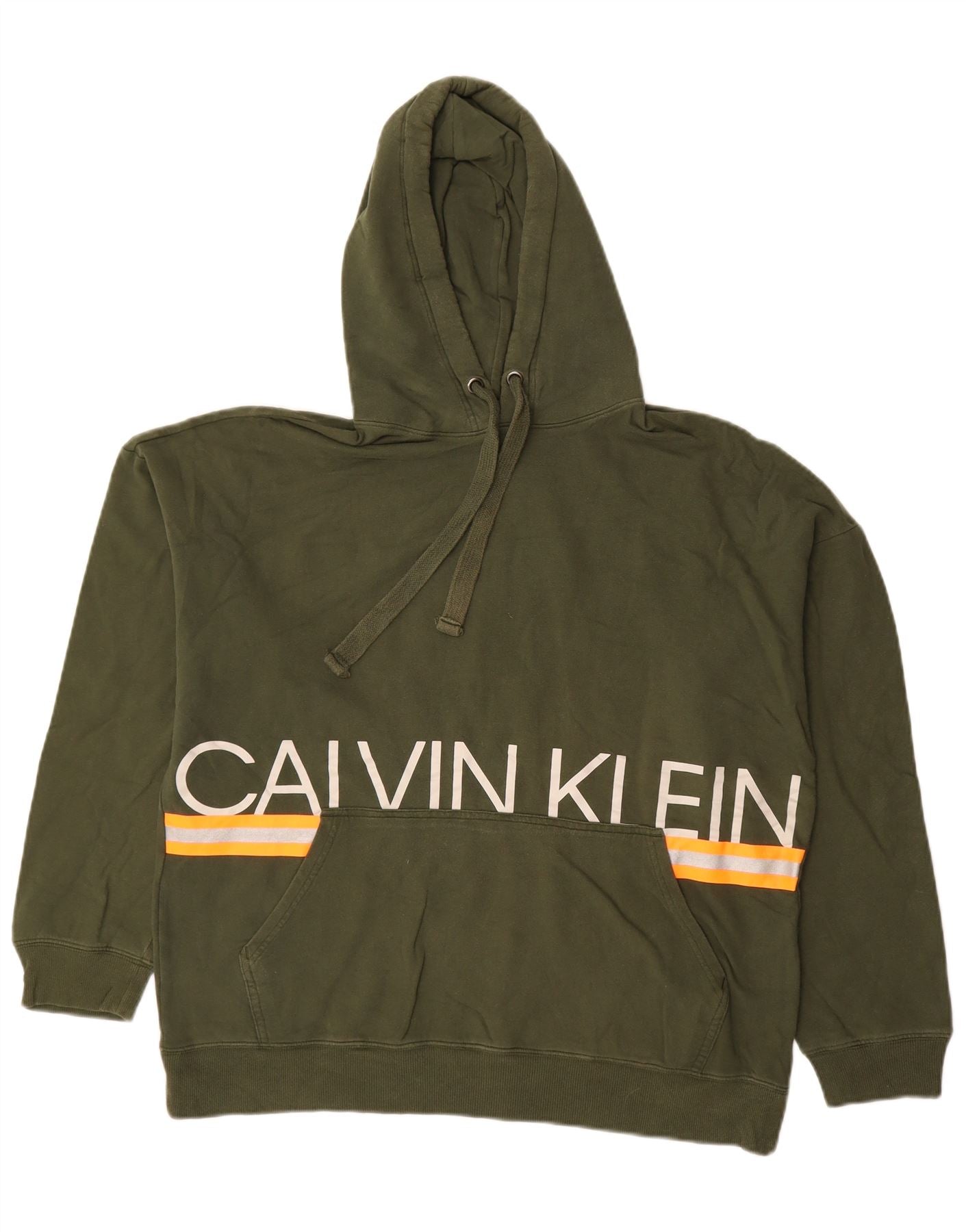 CALVIN KLEIN Damen Übergroßer grafischer Kapuzenpullover UK 16 Large Khaki