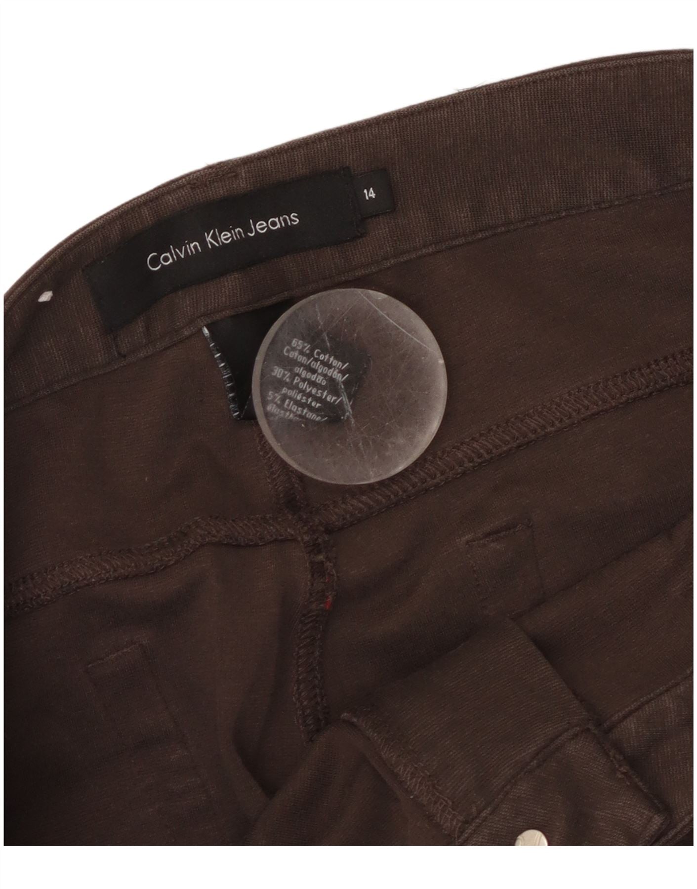 CALVIN KLEIN Damen Gerade Freizeithose US 14 XL W36 L27 Braune Baumwolle