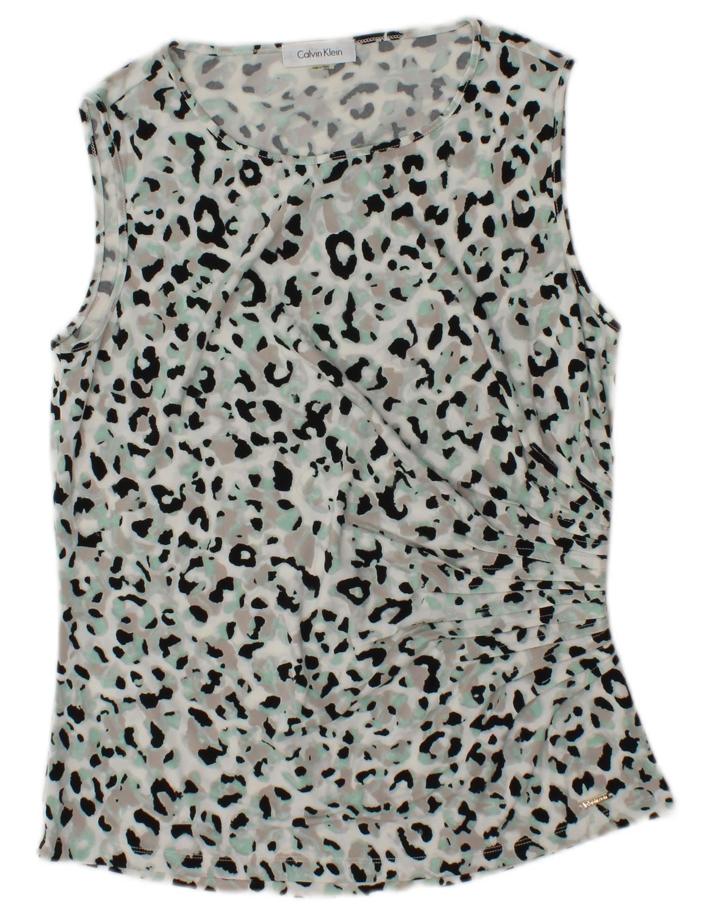 CALVIN KLEIN Damen Weste Top UK 12 Medium Mehrfarbiger Tierdruck