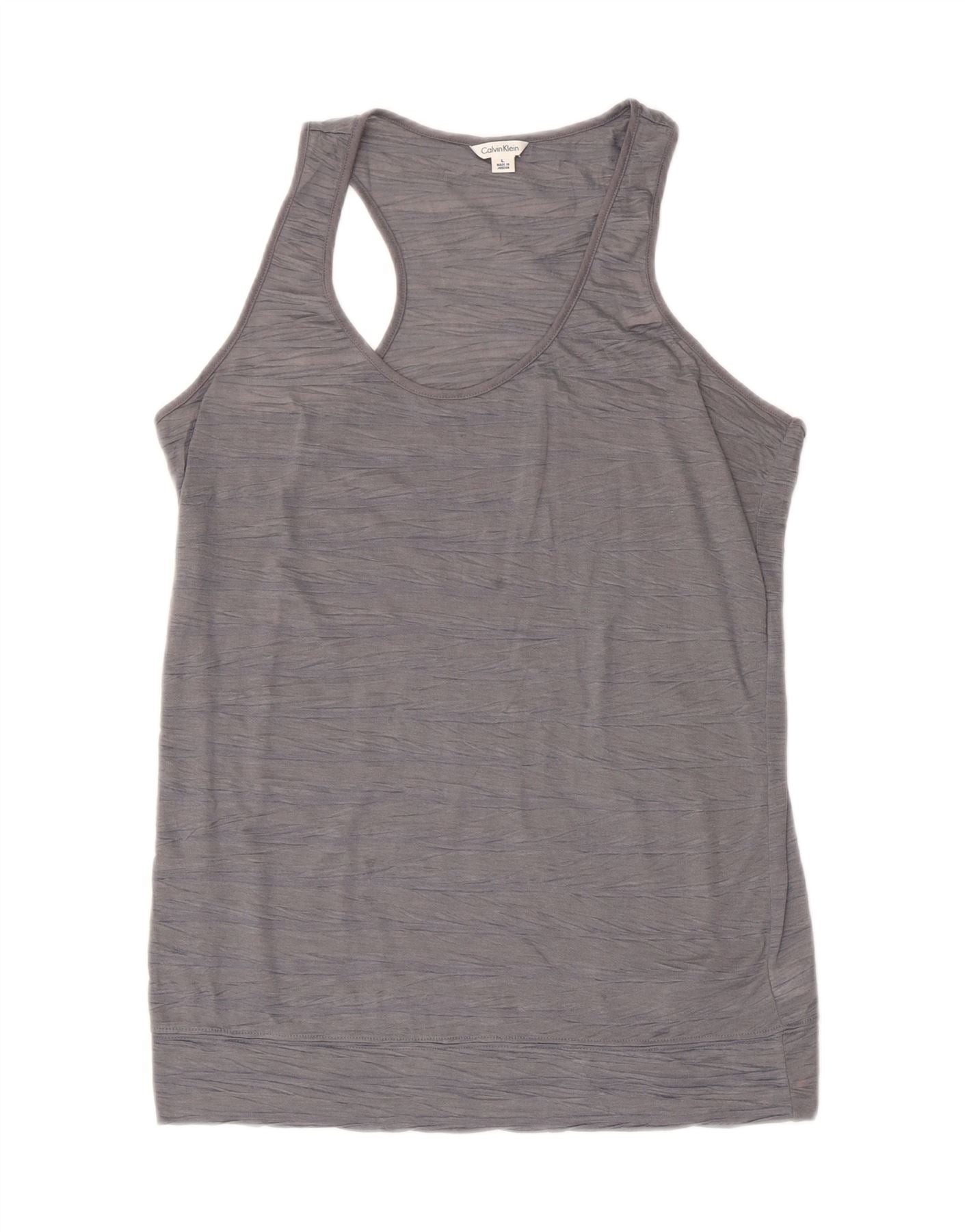 CALVIN KLEIN Damen Weste Top UK 14 Großes grau gestreiftes Polyester