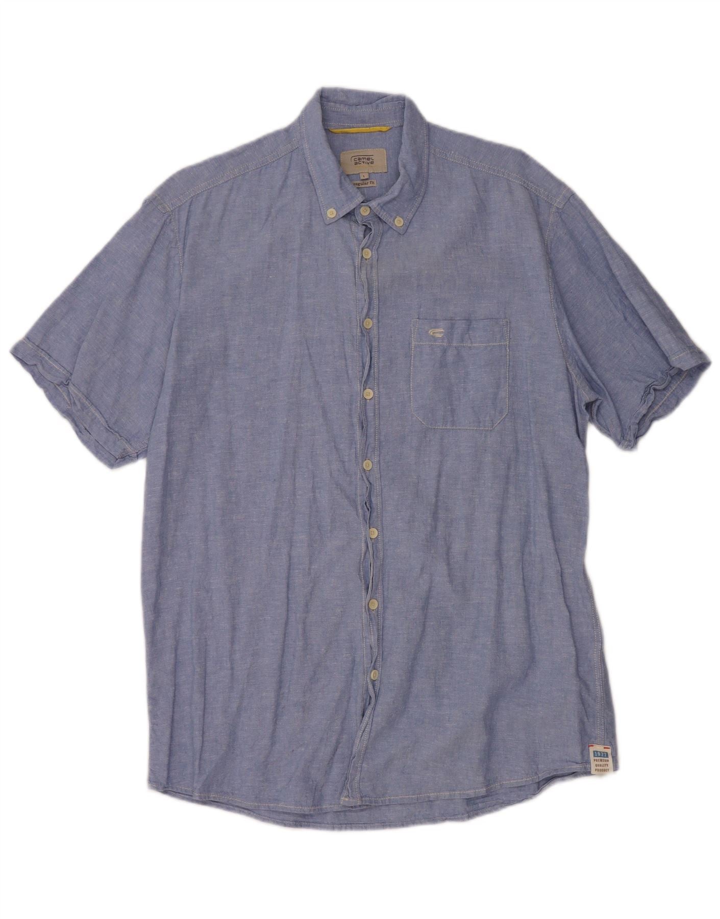 CAMEL ACTIVE Herren-Kurzarmhemd mit normaler Passform, großes, blau meliertes Leinen