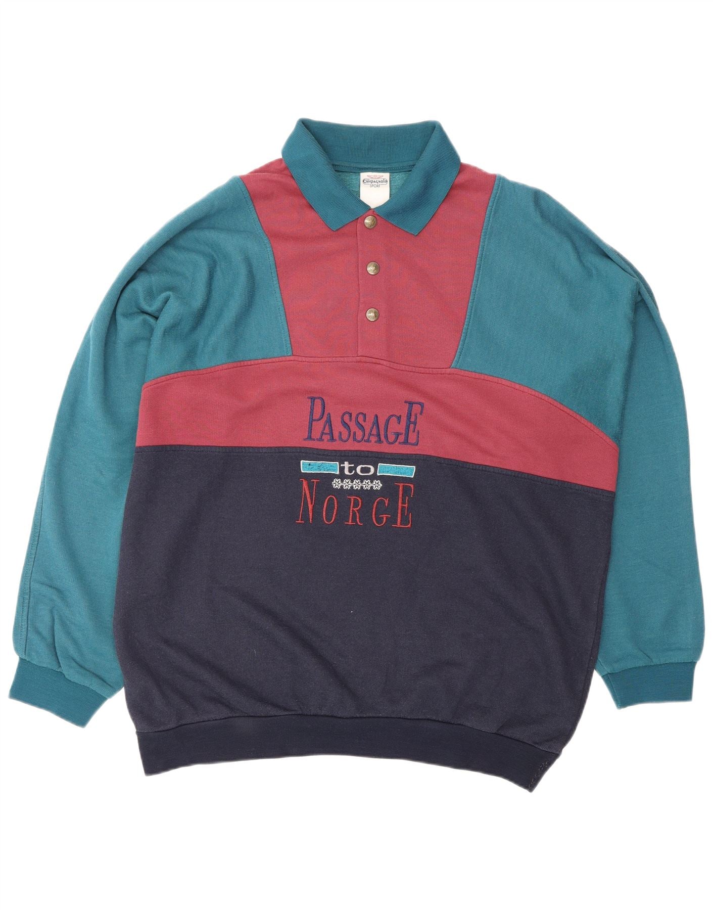 CAMPAGNOLO Mens Polo Neck Sweatshirt Jumper XL Multicoloured Colourblock