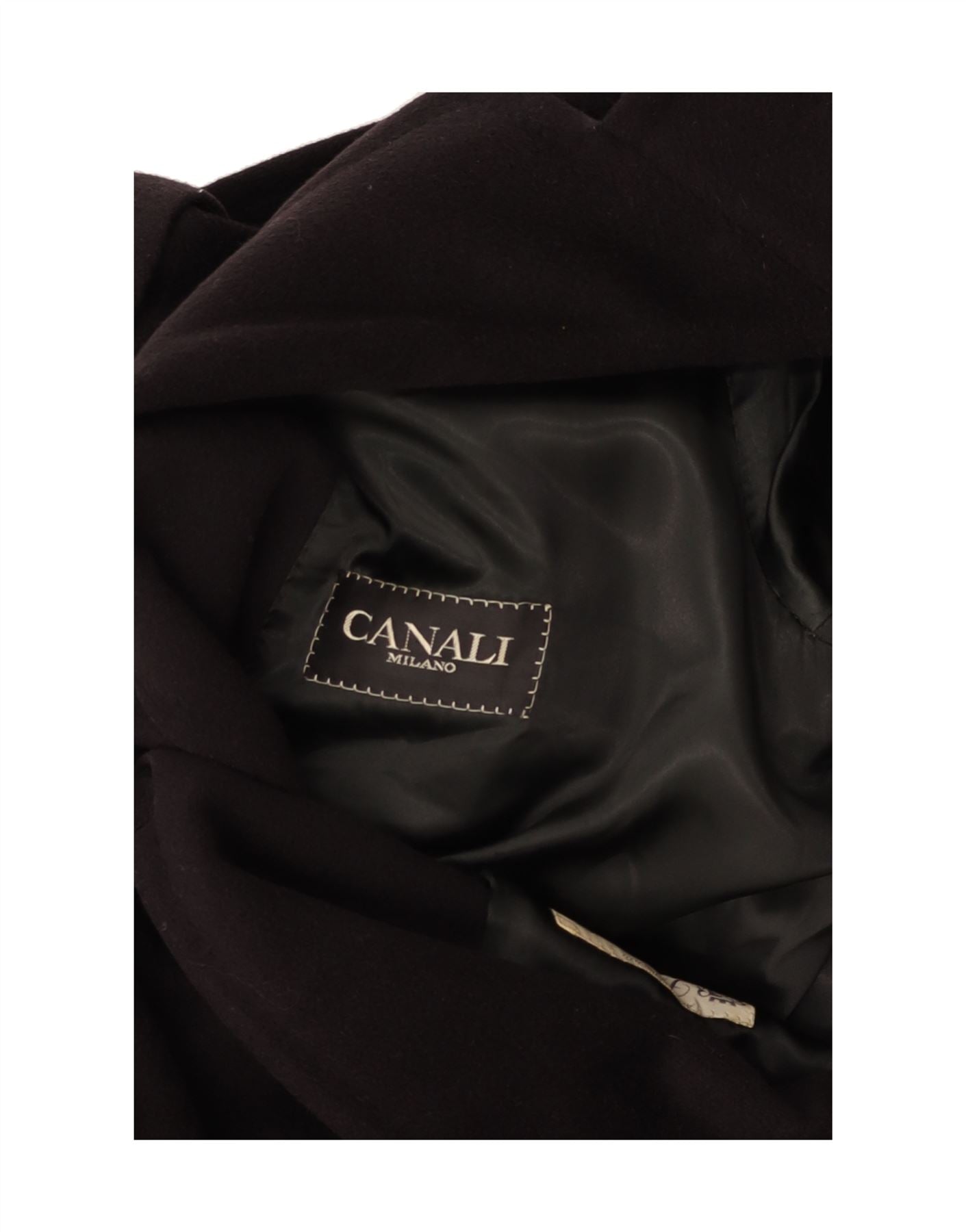 - AI Description: This Canali overcoat is a timeless classic for women. Crafted in Italy, this black, tweed-like, wool-fit coat features a regular fit, long sleeves and a collared neckline. The button closure, lining, shoulder pads and pockets add to its functionality and style. Accented with buttons, the coat shows minor visible wear overall, reflecting its pre-owned, good condition. Accents include logo. This coat is ideal for a sophisticated, everyday look.