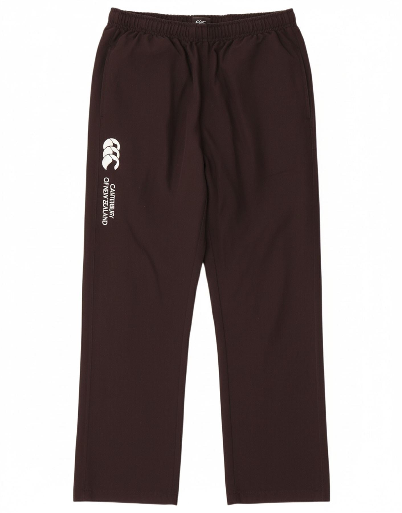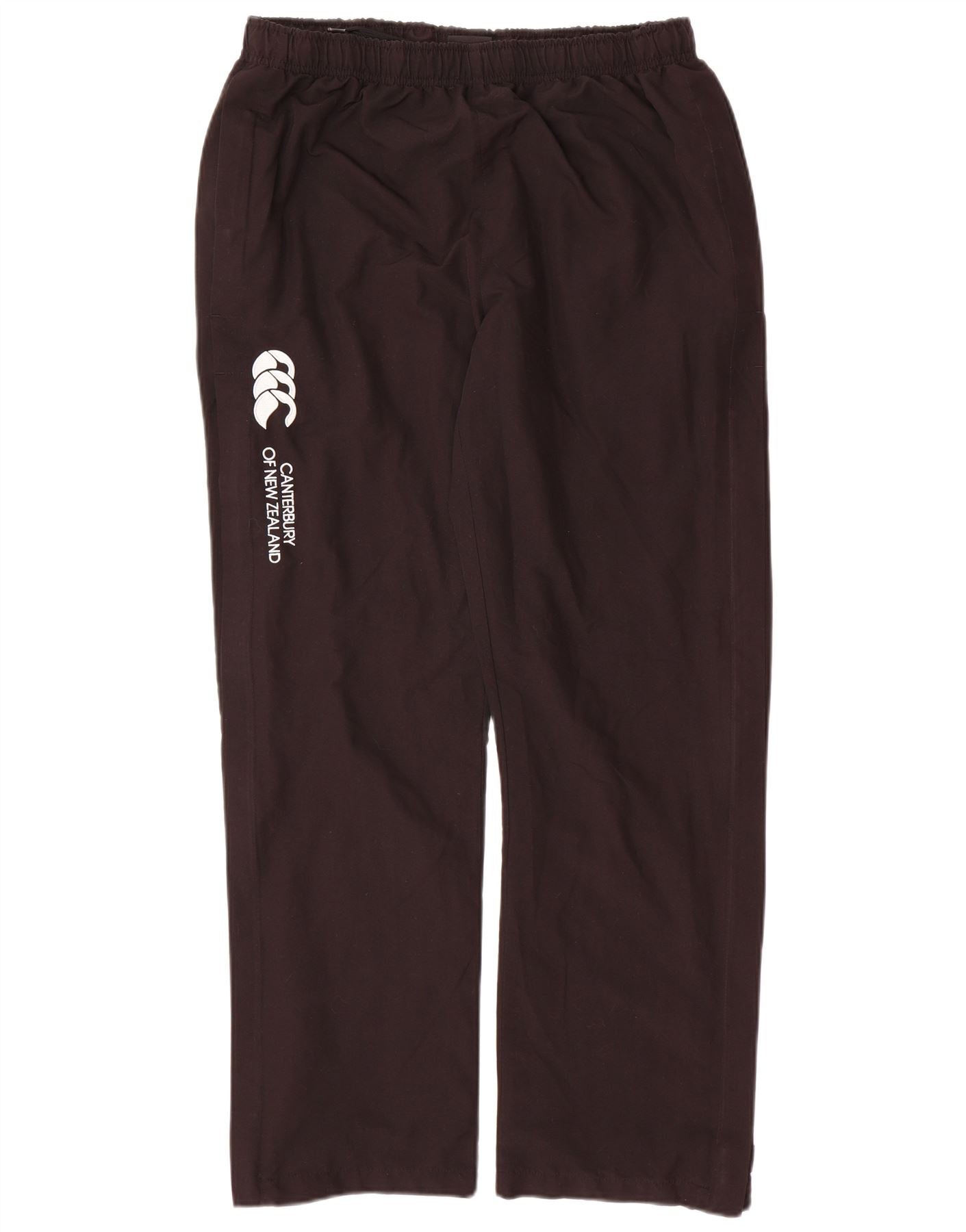 - AI Description: This Canterbury mens tracksuit trousers are crafted from a durable black woven fabric. They offer a regular fit, ensuring comfort and ease of movement. The pull-on design features an elasticated waist for a secure, adjustable fit. Practical pockets provide storage. These windproof trousers are ideal for sports, particularly rugby, offering functional athletic style.