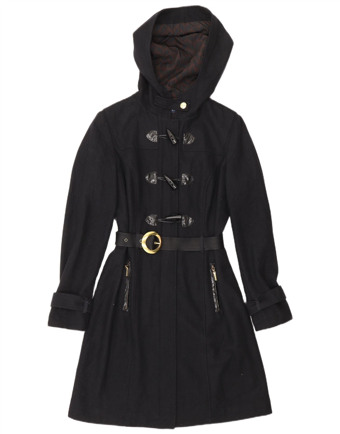 CARACTERE Damen Dufflecoat mit Kapuze UK 10 Small Marineblaue Wolle