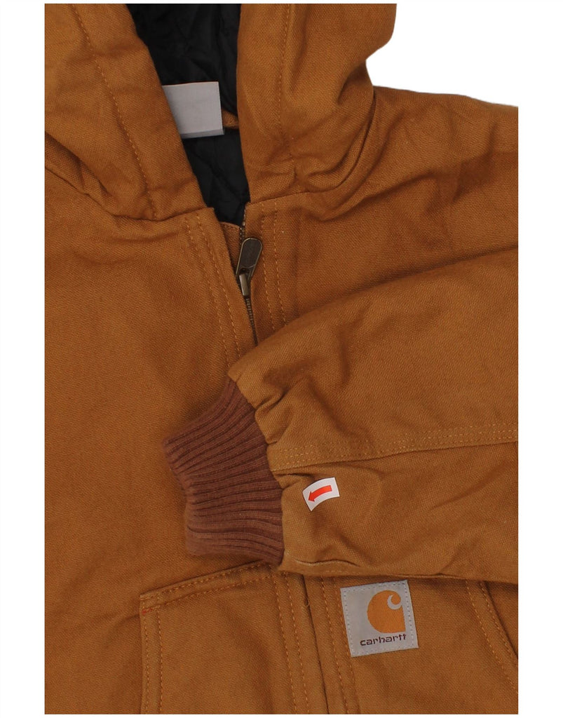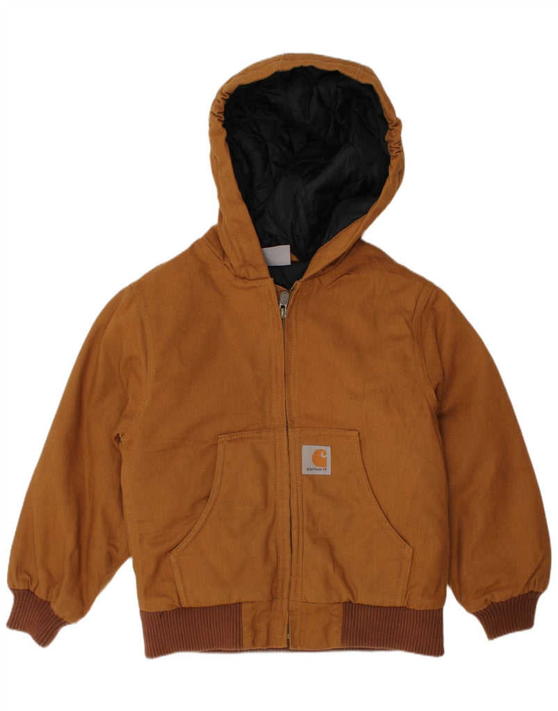 CARHARTT Boys Hooded Bomber Jacket 4-5 Years 2XS Brown Cotton