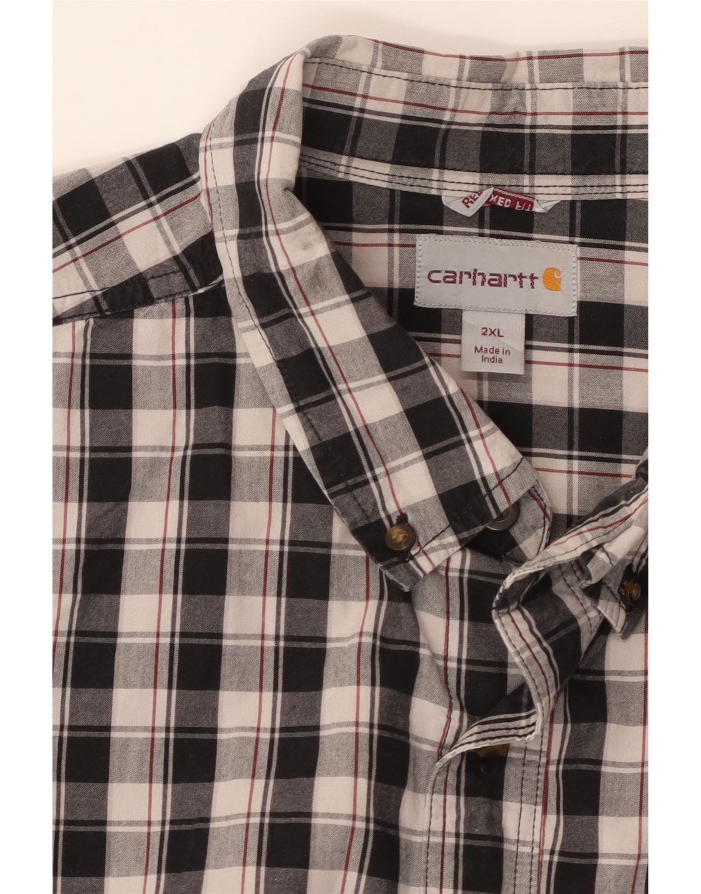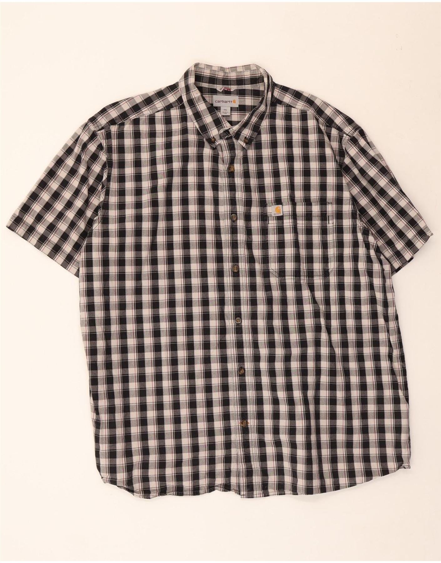 Home > Vintage-Carhartt-Kleidung > Herren > CARHARTT Herren Kurzarm-Hemd mit entspannter Passform, 2XL, schwarz kariert