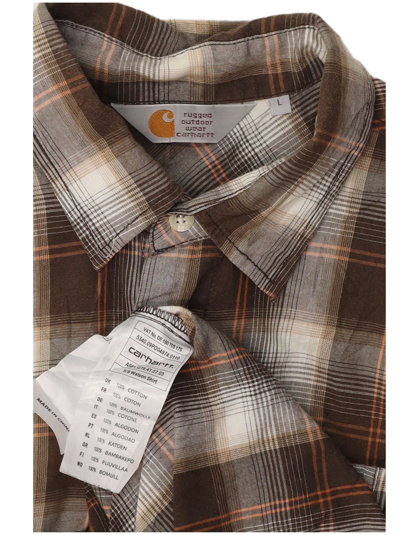 Home > Vintage-Carhartt-Kleidung > Herren > CARHARTT Herren-Kurzarmhemd, groß, braun, kariert, Baumwolle