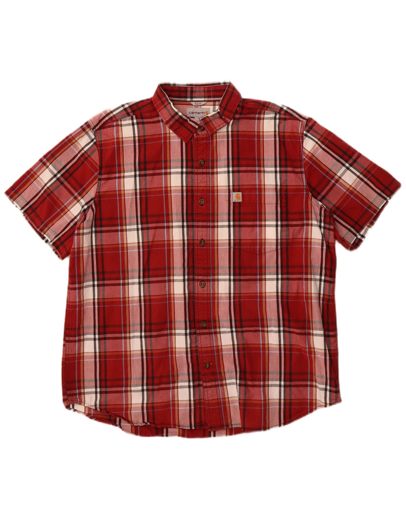 Home > Vintage-Carhartt-Kleidung > Herren > Carhartt Herren Kurzarm-Slim-Fit-Hemd XL aus rot karierter Baumwolle