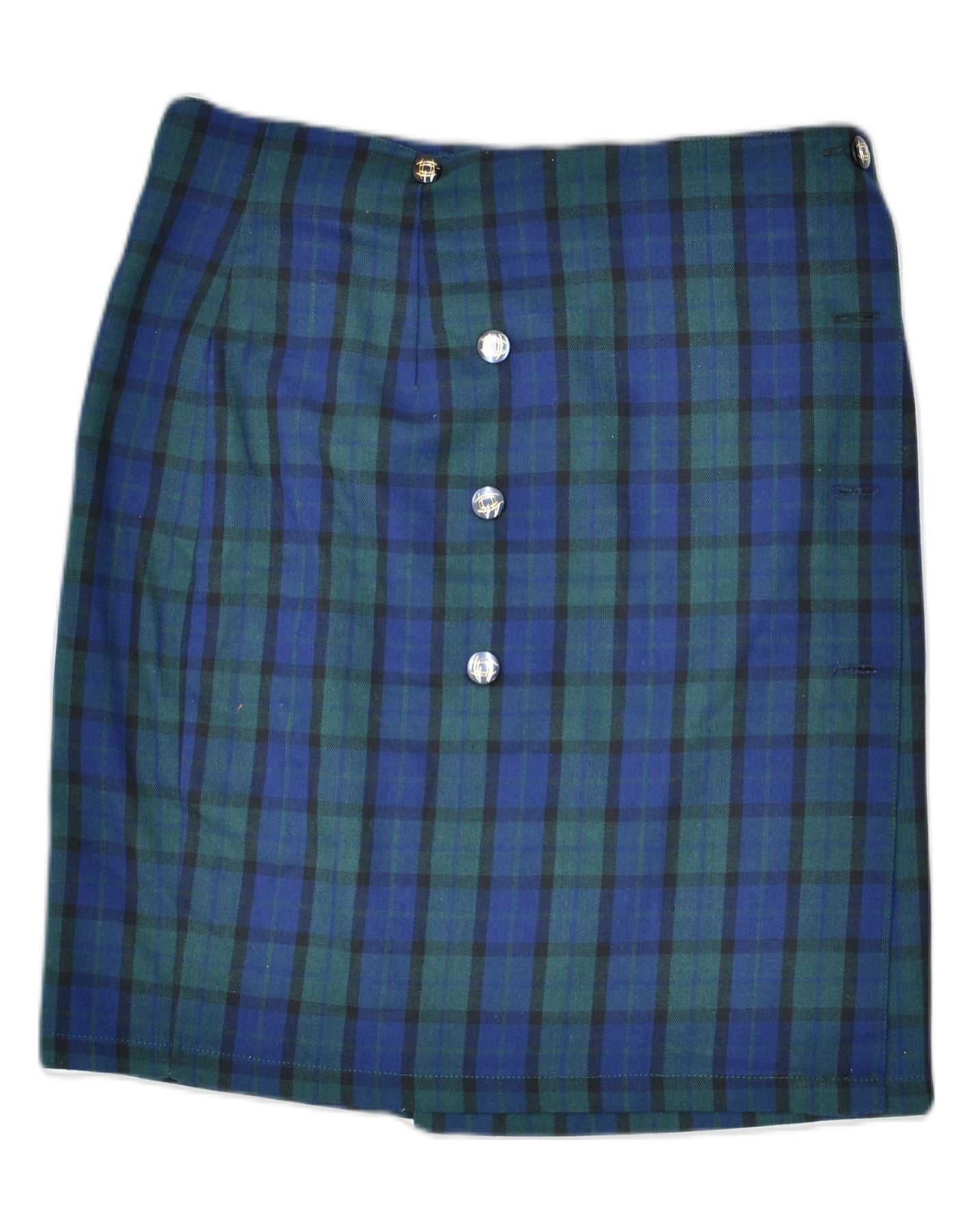 CARLA FERRONI Gerader Damenrock IT 42 Medium W30 Grün kariertes Acetat