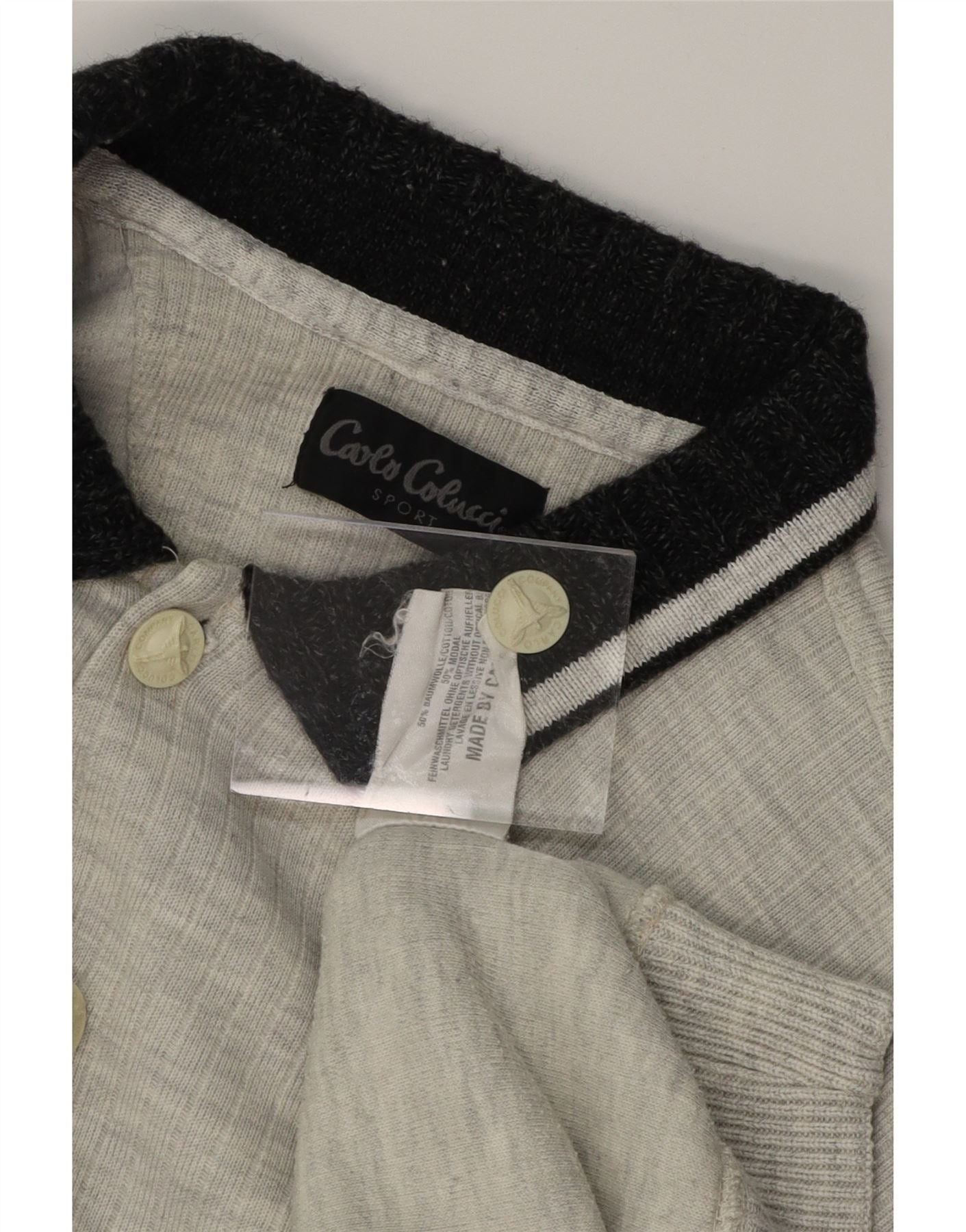 CARLO COLUCCI Mens Polo Neck Jumper Sweater Large Grey Colourblock Cotton