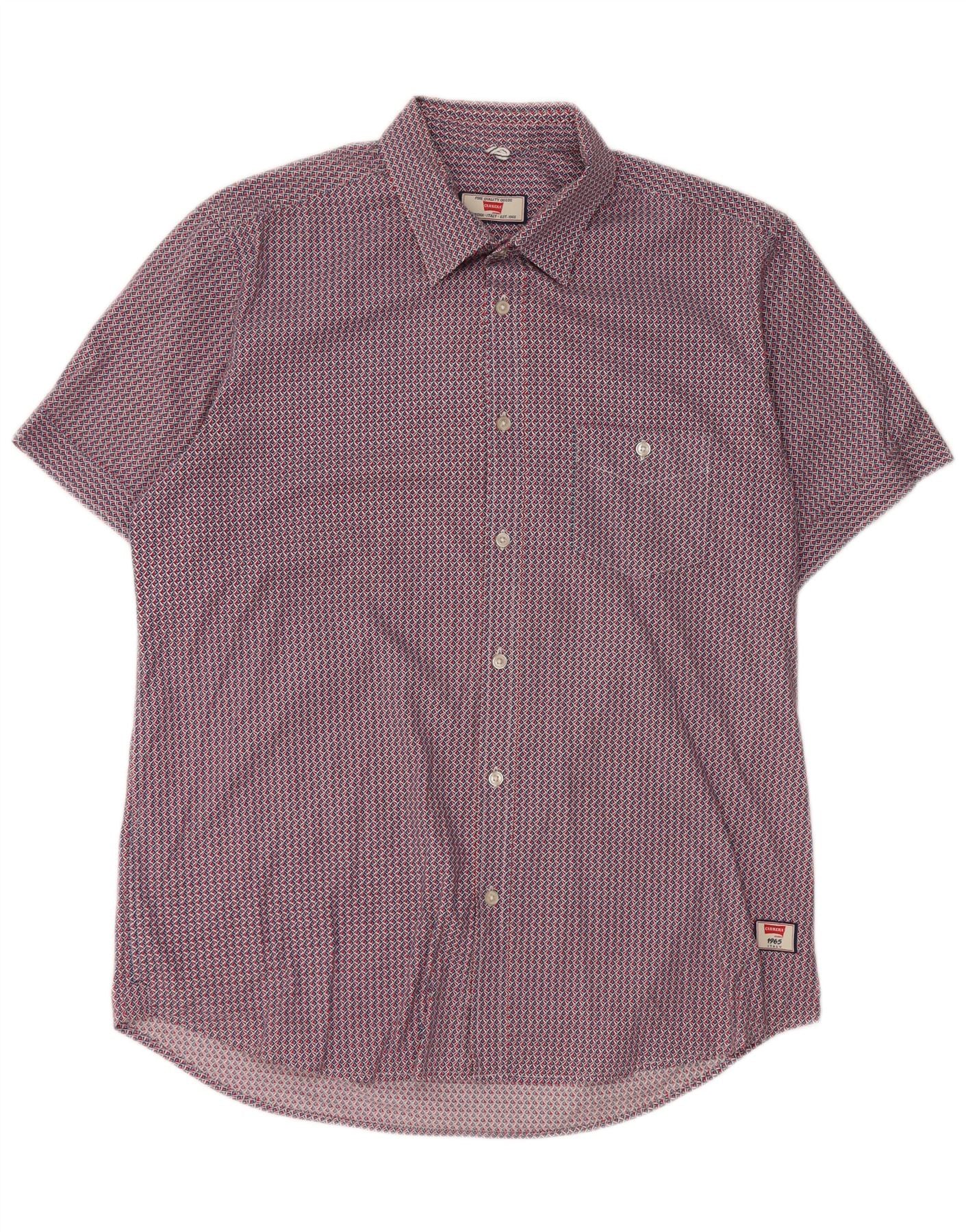Home > Vintage Carrera-Kleidung > Herren > Carrera Herren-Hemd, kurzärmelig, normale Passform, groß, rot, geometrisch, Baumwolle
