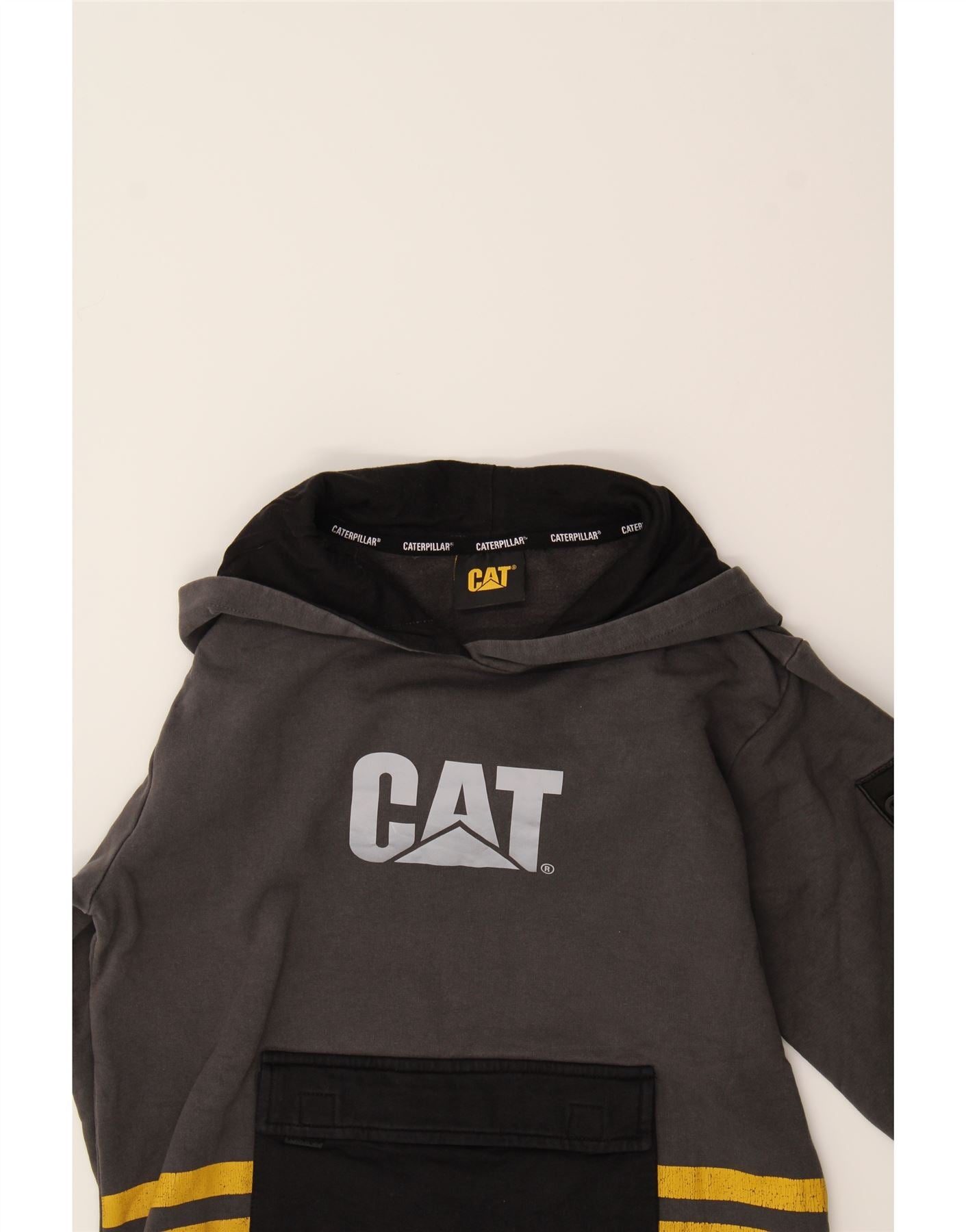 CATERPILLAR Boys Graphic Hoodie Jumper 11-12 Years Grey Cotton
