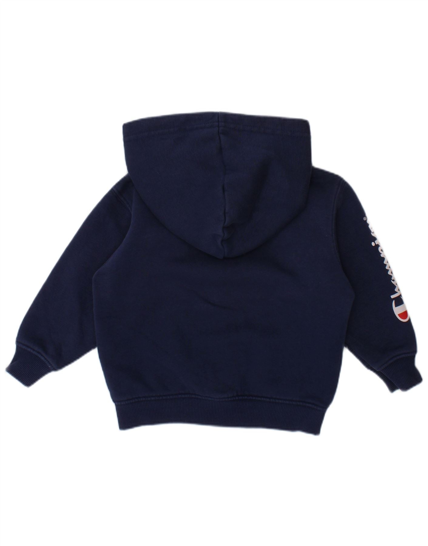 CHAMPION Baby Boys Graphic Zip Hoodie Sweater 9-12 Months Navy Blue Cotton