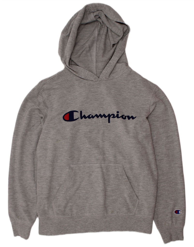 CHAMPION Kapuzenpullover mit Grafik für Jungen, 9–10 Jahre, mittelgrau gesprenkelte Baumwolle