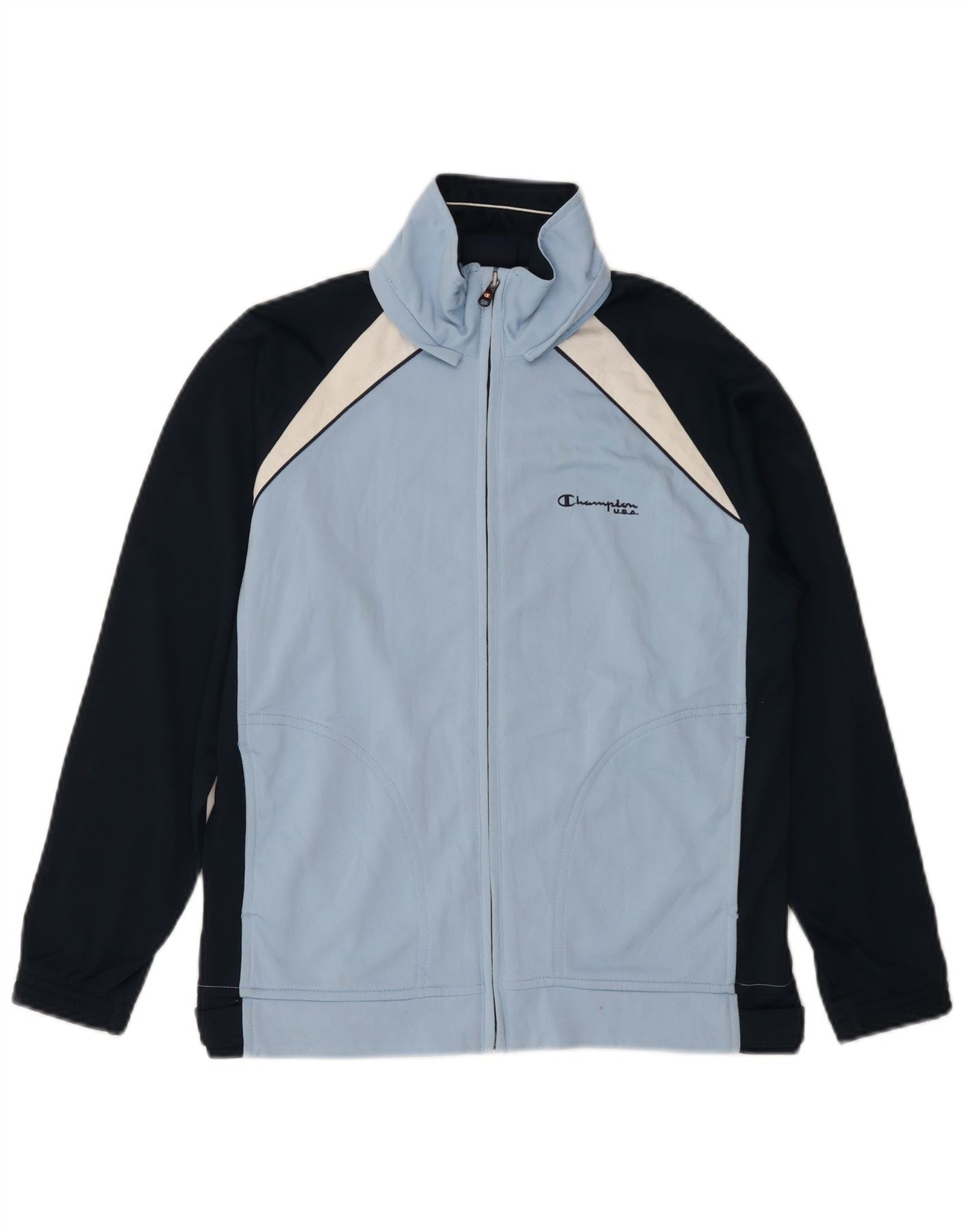 CHAMPION Jungen-Trainingsanzug-Top-Jacke, 11–12 Jahre, blaues Colourblock-Polyester