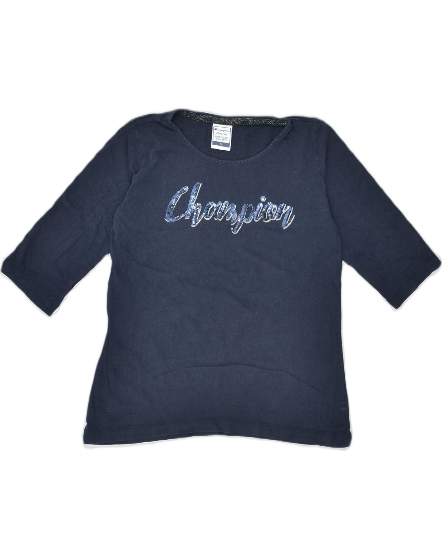 CHAMPION Grafikoberteil für Damen, 3/4-Ärmel, Größe S, Marineblau, Baumwolle