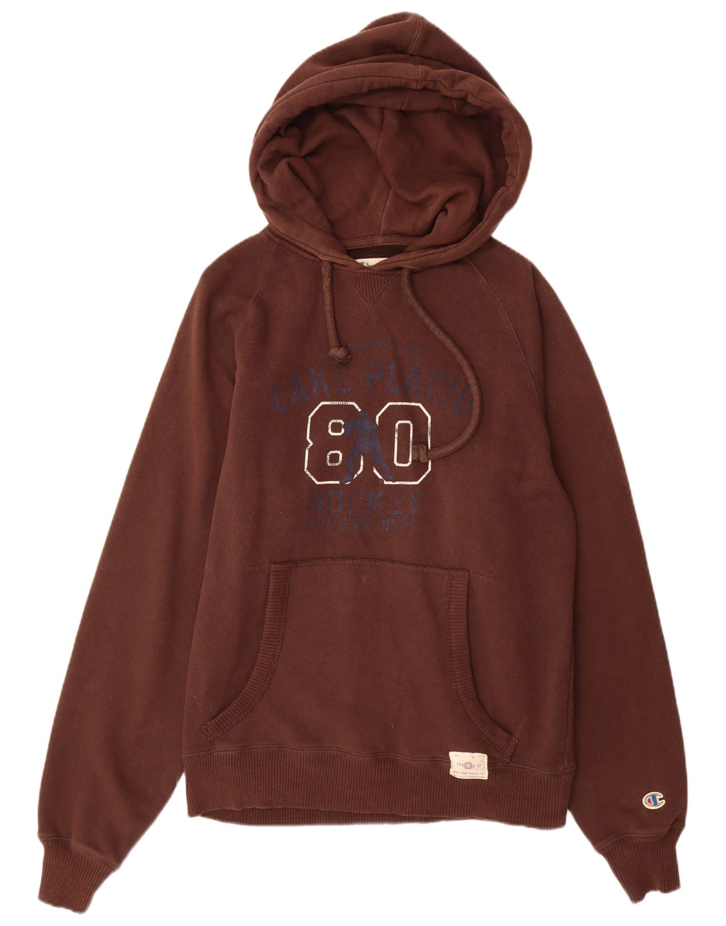 Home > Vintage-Champion-Kleidung > Herren > Kapuzenpullover > CHAMPION Herren-Kapuzenpullover mit Grafik, mittelbraune Baumwolle