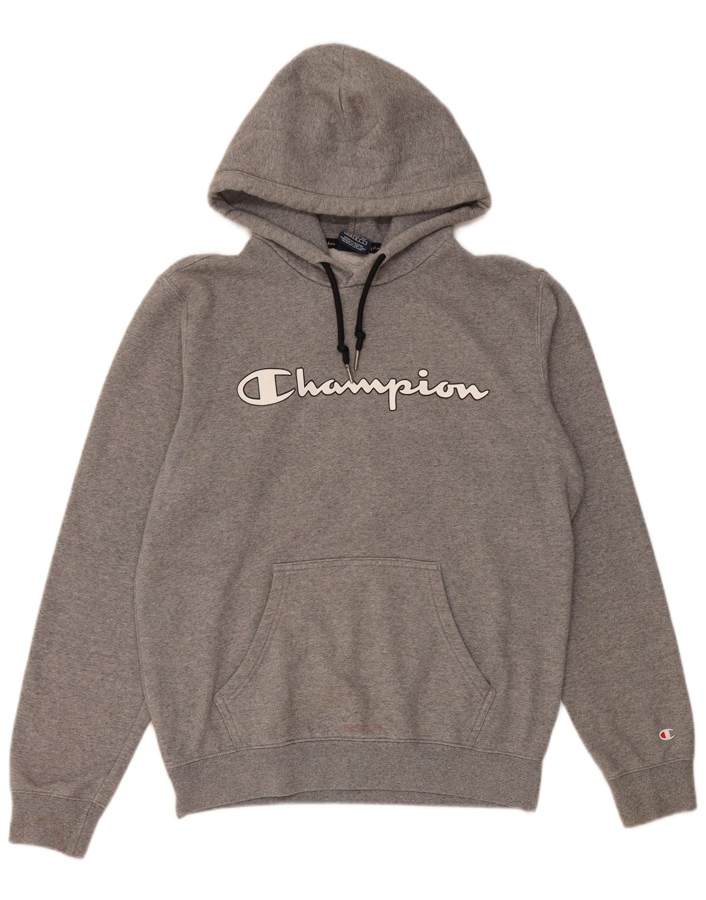 Home > Vintage-Champion-Kleidung > Herren > Kapuzenpullover > Champion Herren-Kapuzenpullover mit Grafik, mittelgrau gesprenkelte Baumwolle