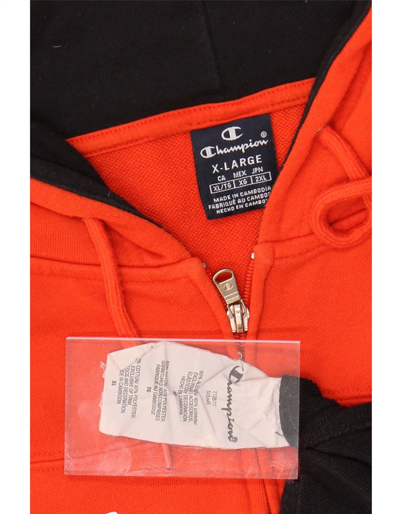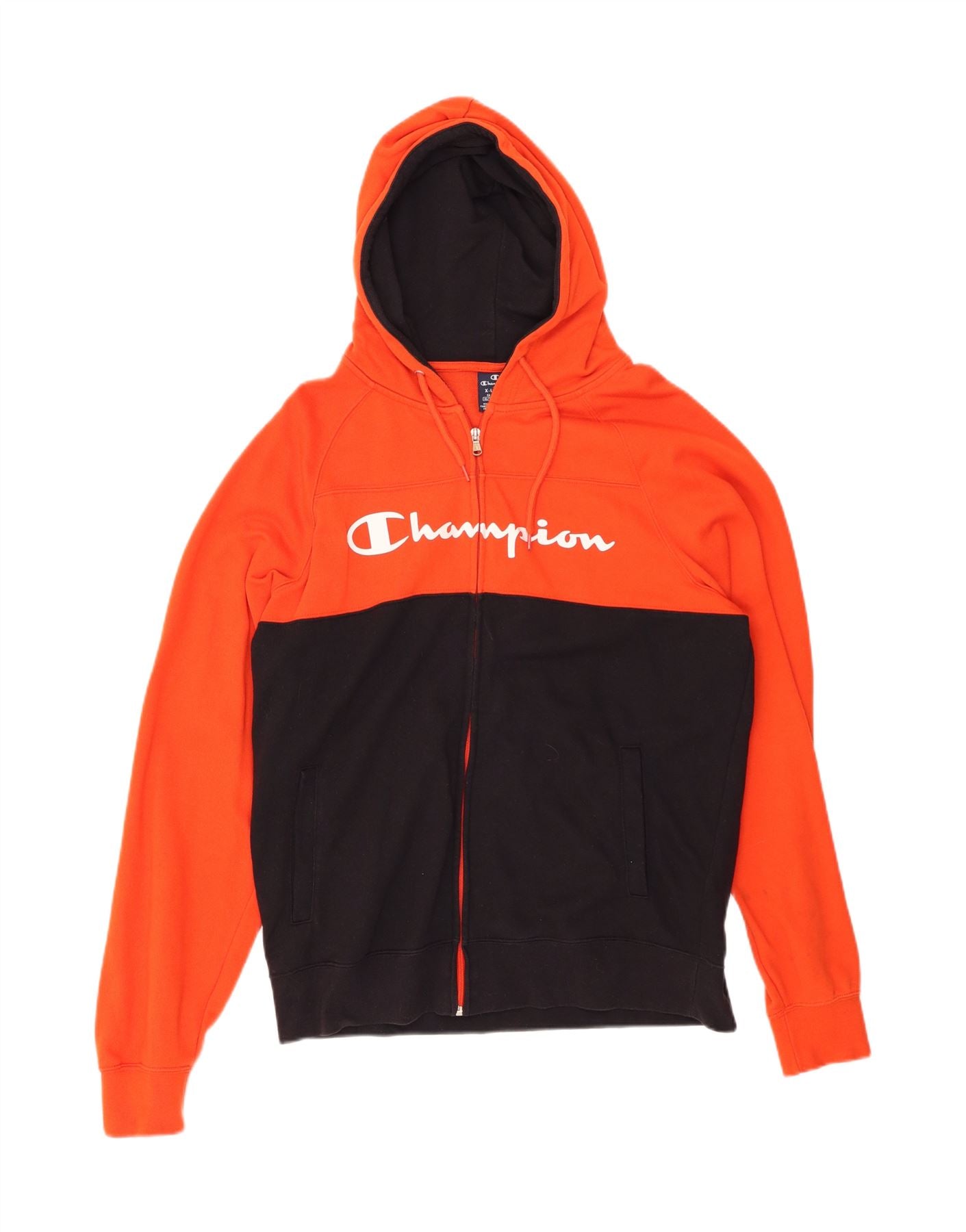 CHAMPION Herren-Kapuzenpullover mit grafischem Reißverschluss, XL, Orange, Colourblock-Baumwolle