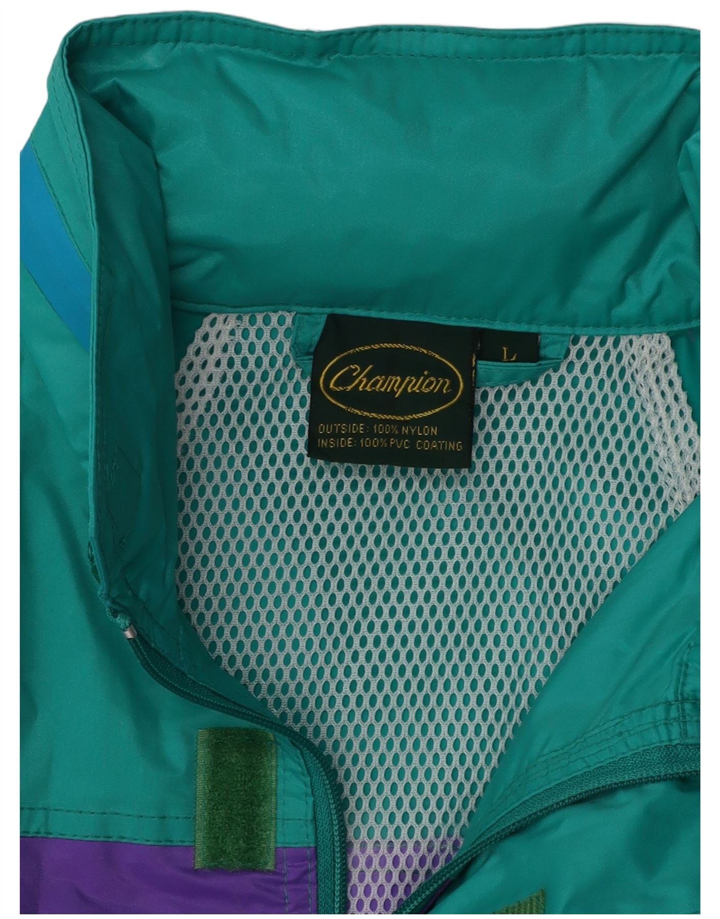 CHAMPION Herren-Regenjacke mit Kapuze, UK 40, Größe L, türkisfarbenes Colourblock-Nylon