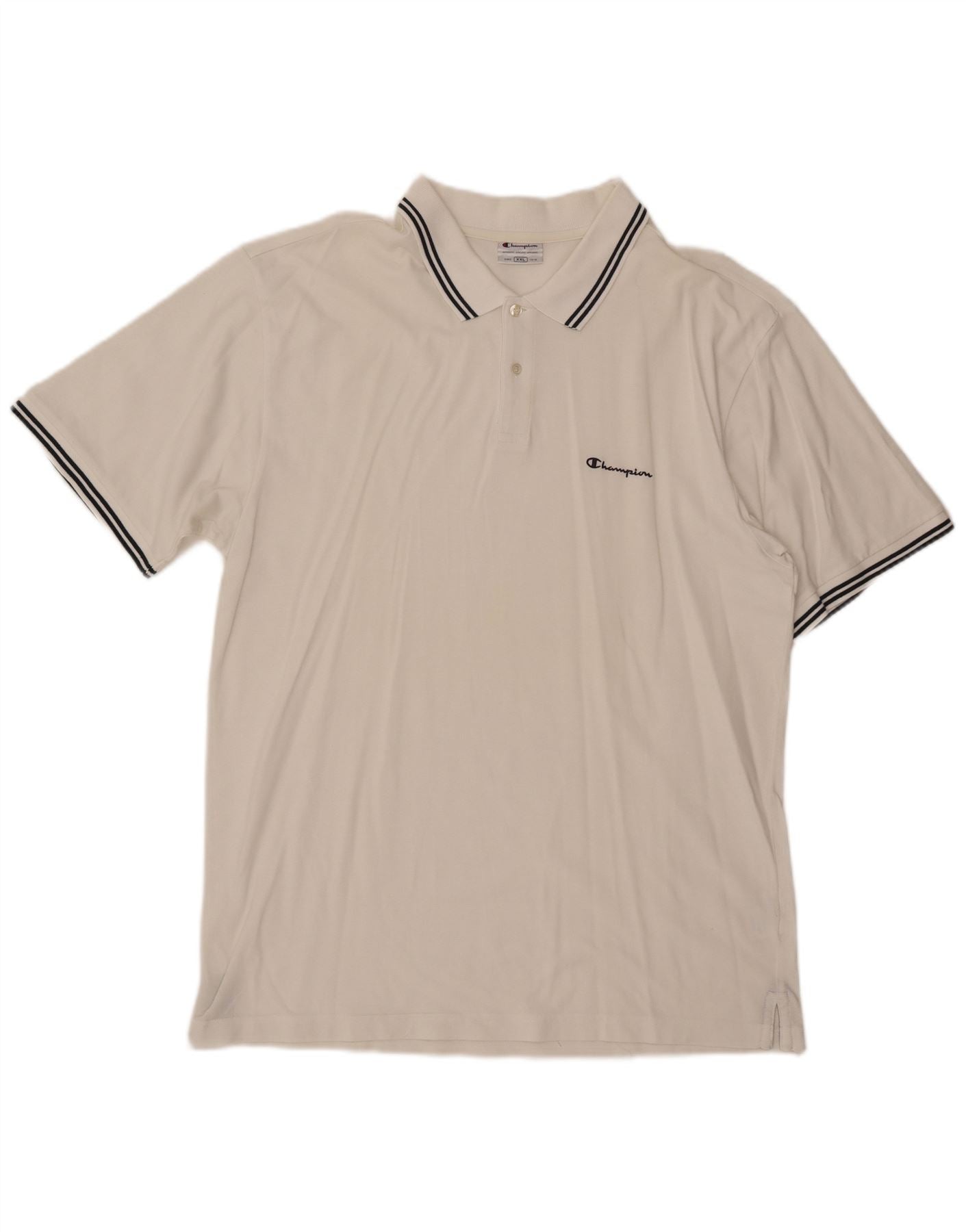 Home > Vintage-Champion-Kleidung > Herren > Poloshirts > CHAMPION Herren Poloshirt 2XL Weiße Baumwolle