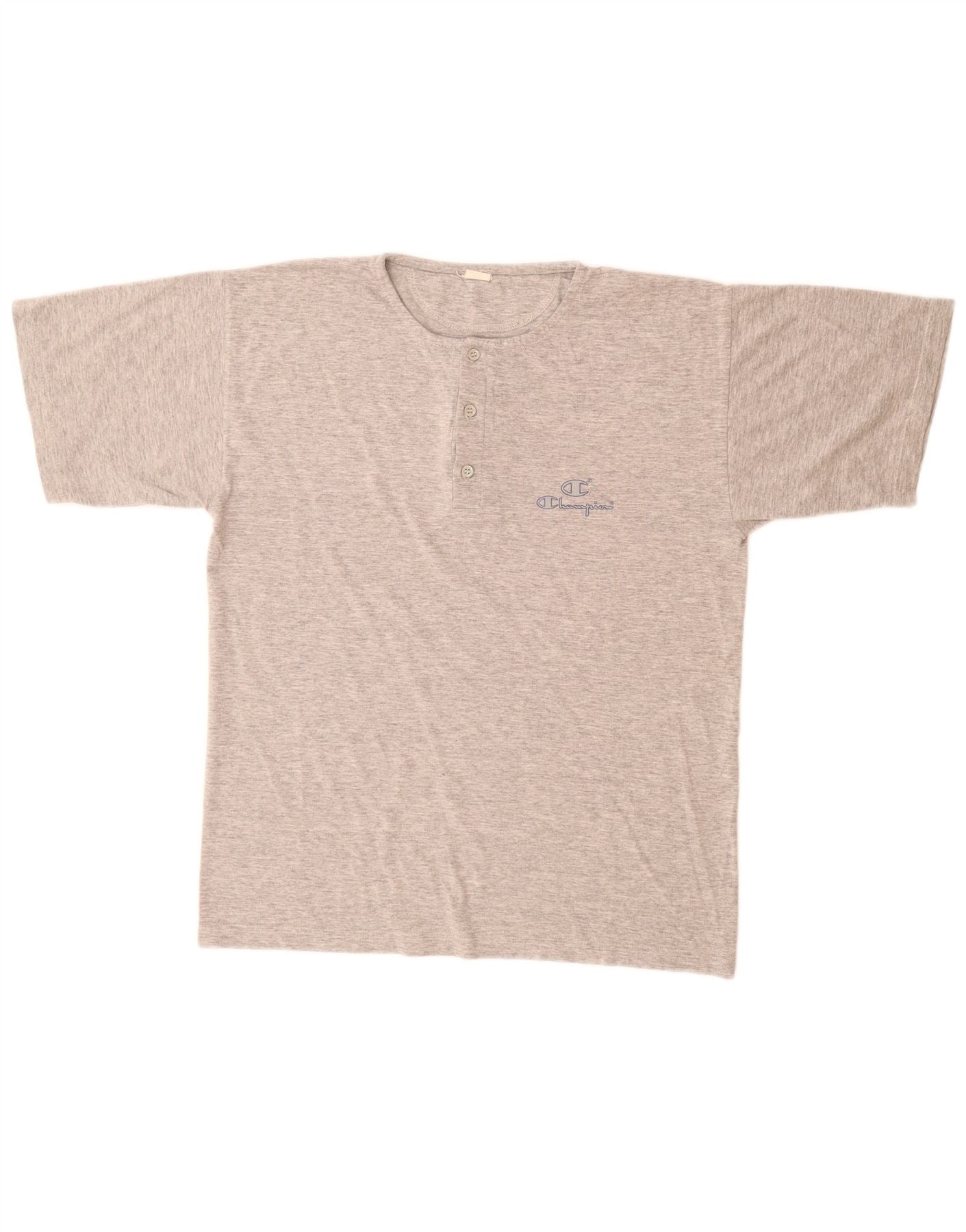 Home > Vintage-Champion-Kleidung > Herren > T-Shirts > CHAMPION Herren-T-Shirt-Oberteil aus mittelgrauer Baumwolle