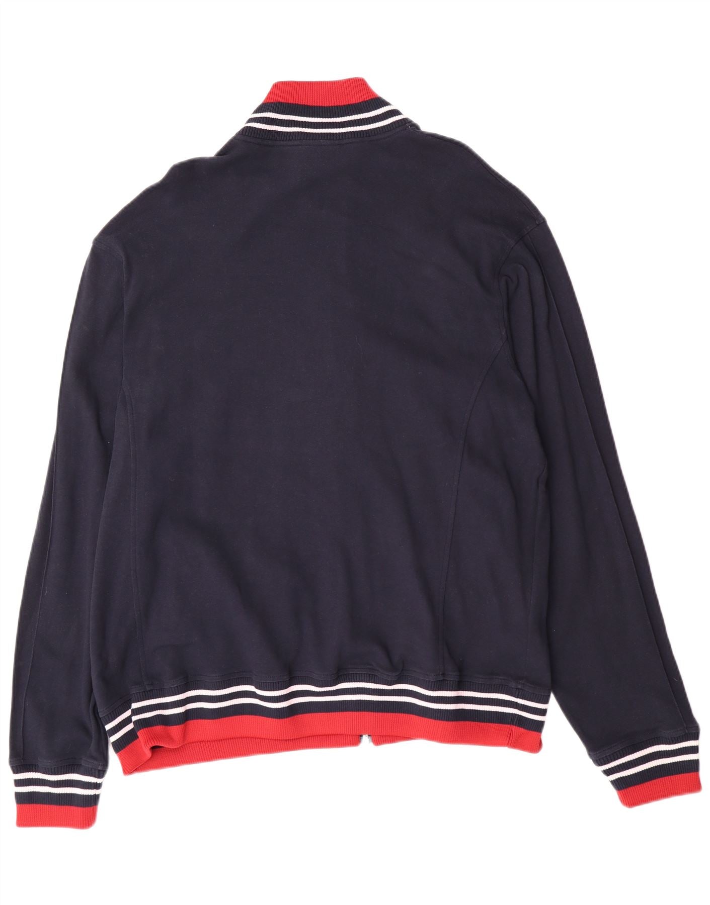 - KI-Beschreibung: Diese Champion-Trainingsjacke für Herren ist aus weichem, marineblauem Jersey aus 100 % Baumwolle gefertigt. Es verfügt über einen Kragenausschnitt mit rot-weißen Streifendetails. Lange Ärmel und eine normale Passform sorgen für Komfort. Vorne verläuft ein durchgehender Reißverschluss. Auch die Rippbündchen an Ärmeln und Saum sind mit passenden roten und weißen Streifen versehen. Zwei praktische Taschen sind im Lieferumfang enthalten. Ein dezentes Champion-Logo sorgt für den charakteristischen Touch.