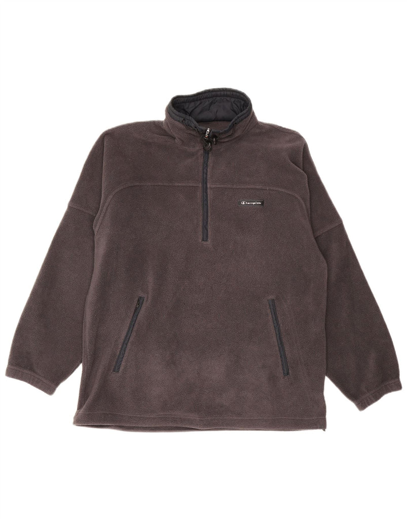 - AI Description: This Champion mens sweatshirt jumper is crafted from soft brown fleece, offering warmth and comfort. It features a mock neck and a practical 1/4 zip closure for adjustable ventilation. Long sleeves provide ample coverage. The regular fit ensures a comfortable, versatile silhouette. Convenient pockets add functionality. A subtle brand logo completes this classic, sporty design.