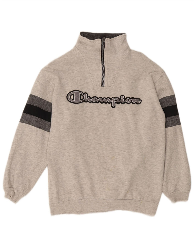 CHAMPION Mens Zip Neck Graphic Sweatshirt Jumper Small Grey Colourblock