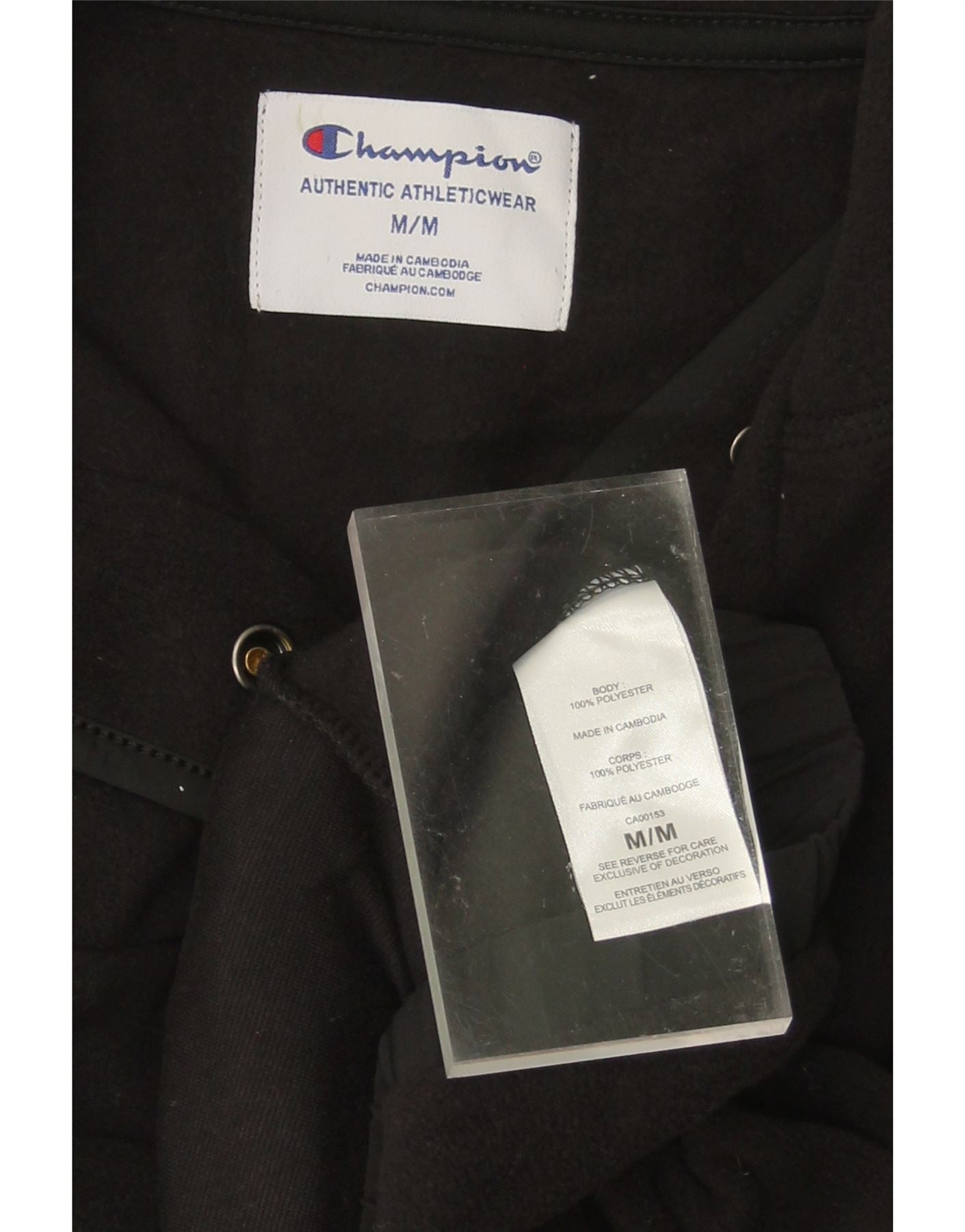 CHAMPION Womens Button Neck Fleece Jumper UK 14 Medium Black Polyester
