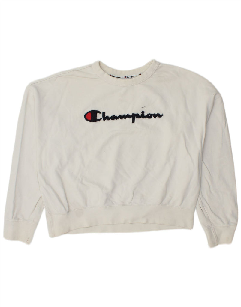 CHAMPION Womens Crop Oversized Sweatshirt Jumper UK 14 Medium White