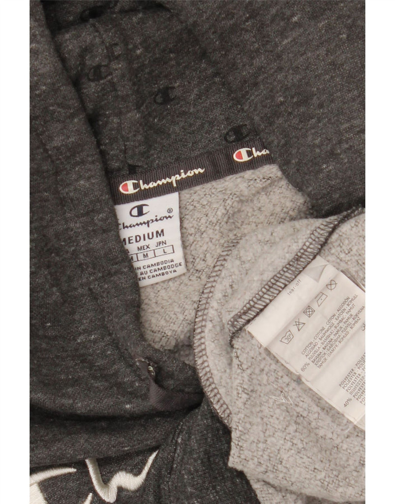 CHAMPION Womens Graphic Hoodie Jumper UK 14 Medium Grey Flecked Cotton