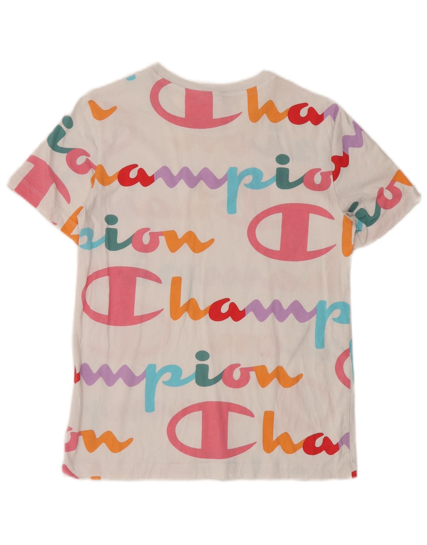 Home > Vintage-Champion-Kleidung > Damen > T-Shirts > CHAMPION Damen Grafik-T-Shirt-Oberteil UK 12 Mittelweiß