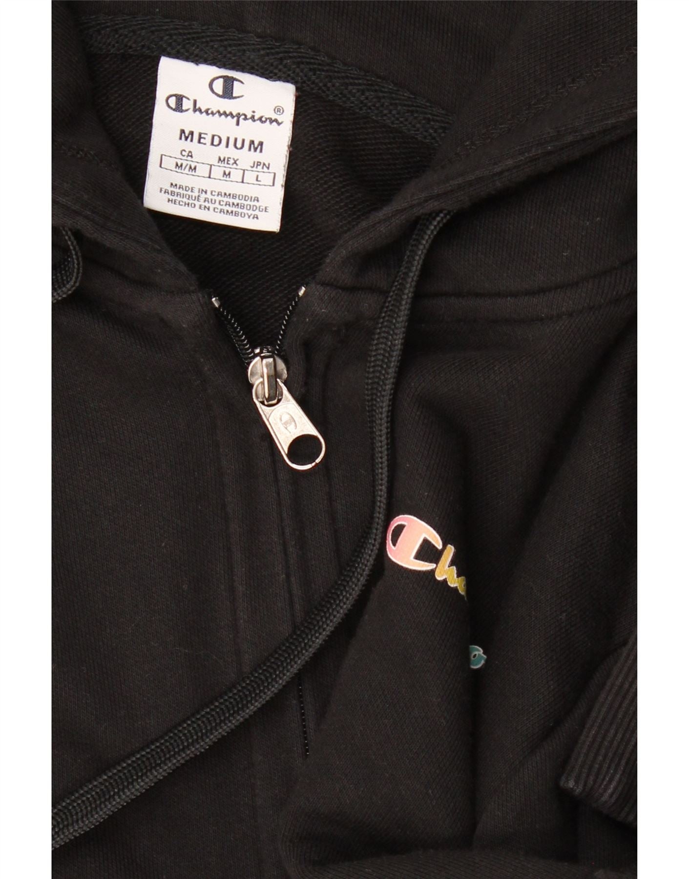 CHAMPION Womens Graphic Zip Hoodie Pullover UK 14 Medium Schwarz