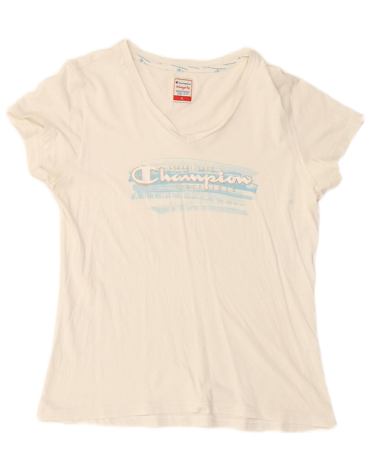 Home > Vintage-Champion-Kleidung > Damen > T-Shirts > CHAMPION Damen Heritage Fit Graphic T-Shirt Top UK 18 XL Weiß