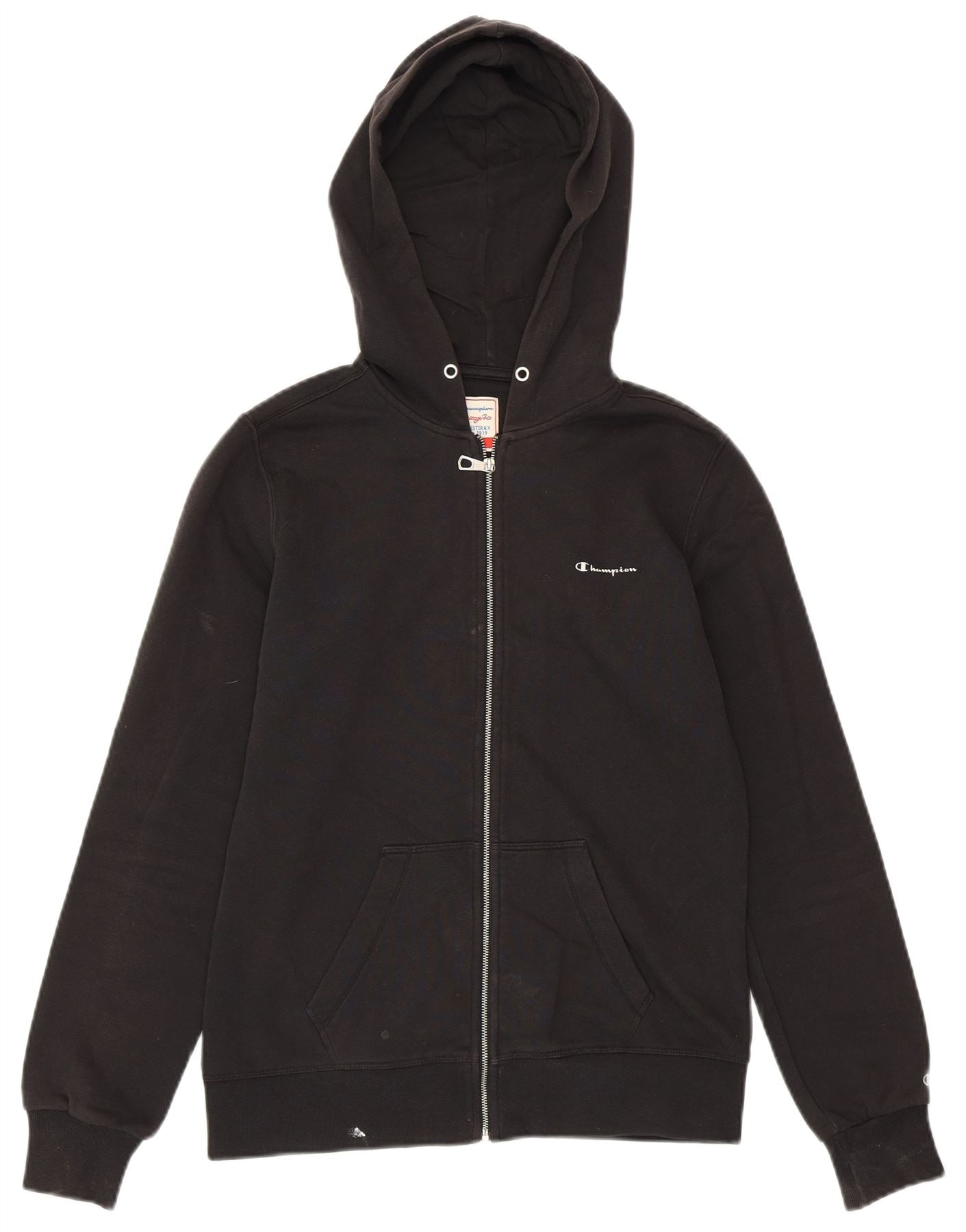 CHAMPION Womens Heritage Fit Zip Hoodie Pullover UK 14 Mittelschwarze Baumwolle