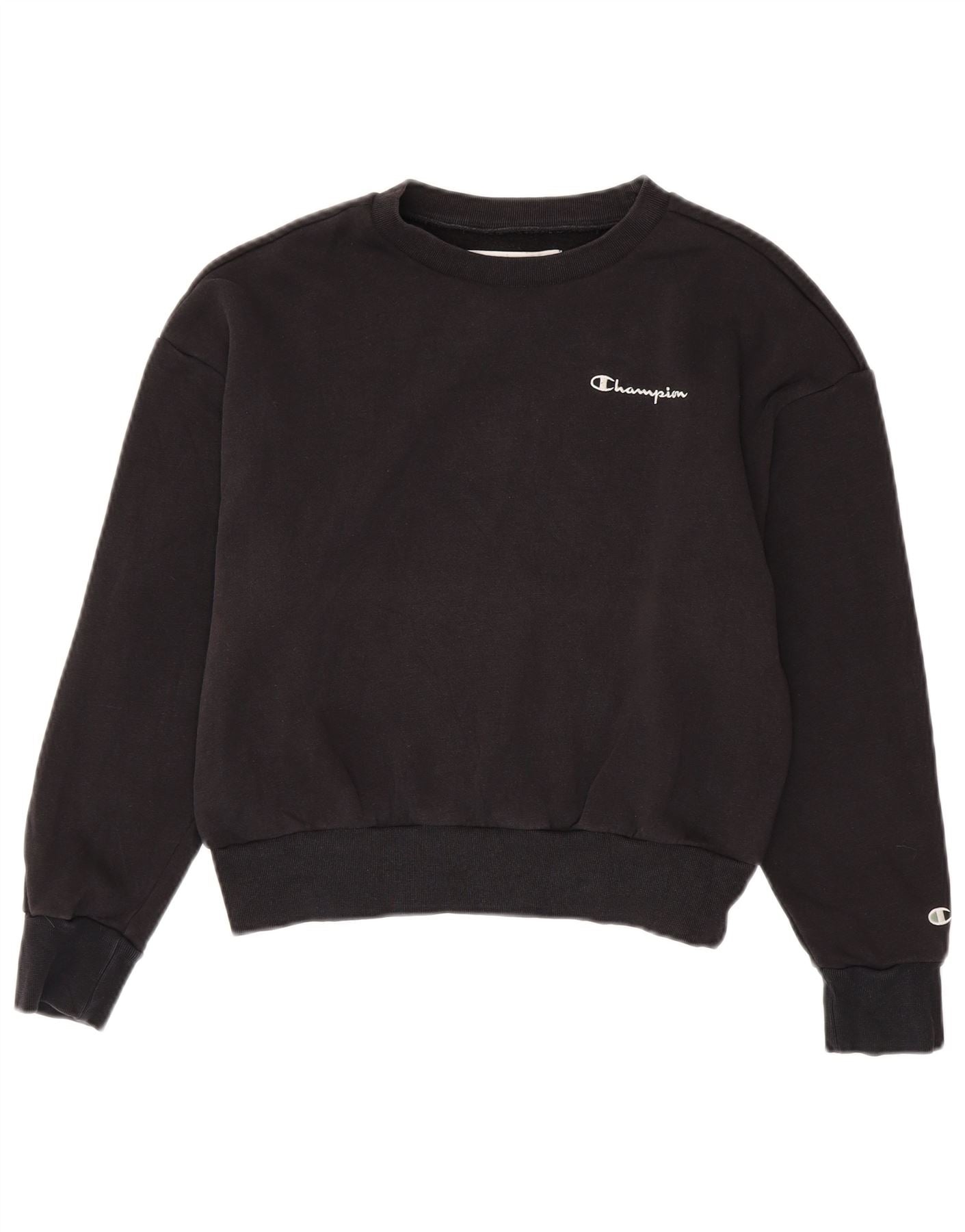 CHAMPION Womens Oversized Crop Sweatshirt Jumper UK 10 Small Black Cotton