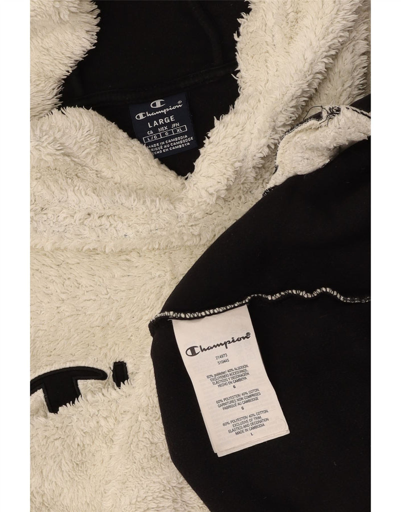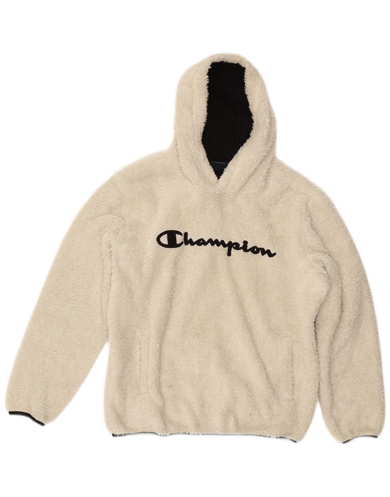 CHAMPION Womens Oversized Fleece Hoodie Jumper UK 16 Large Off White