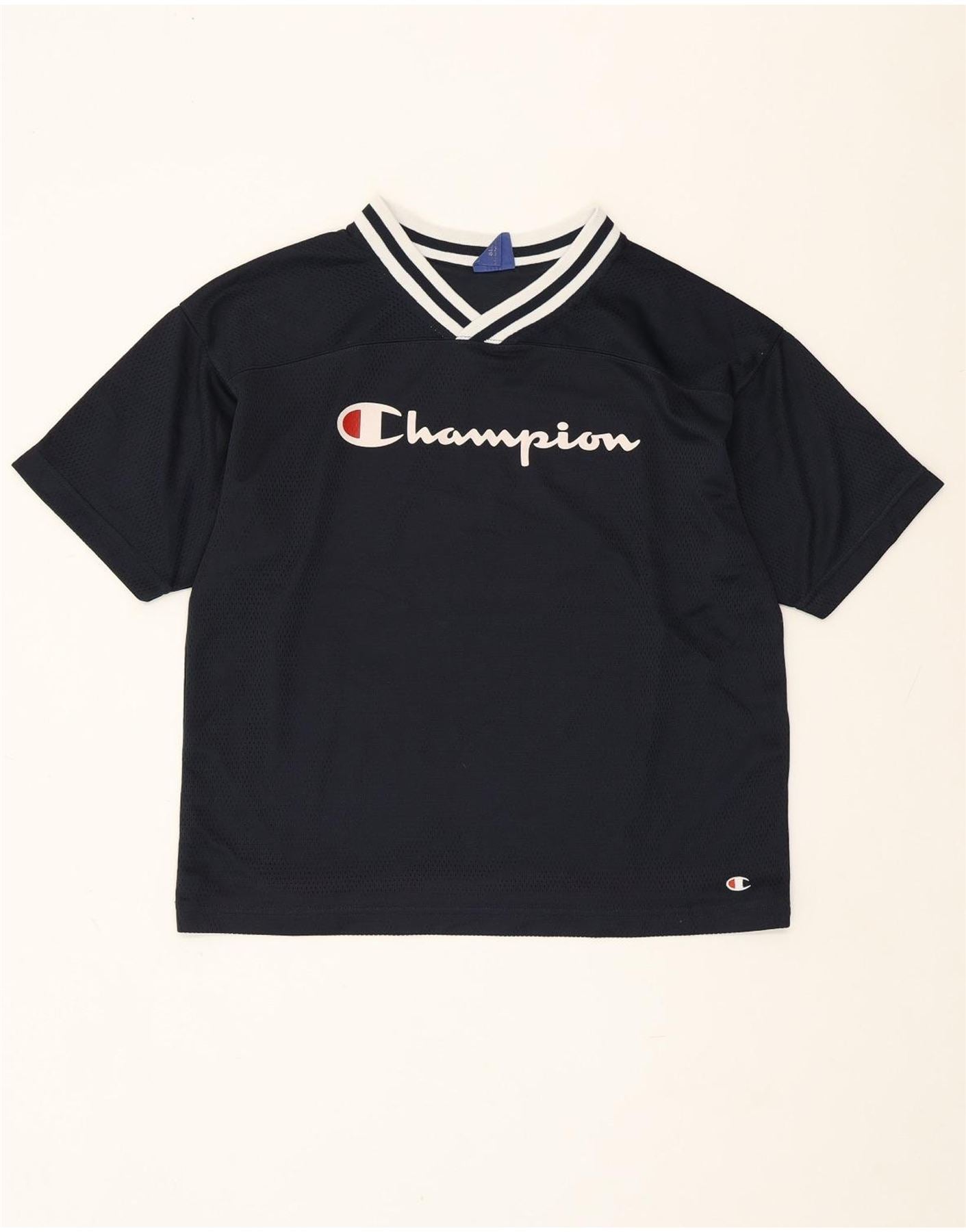 CHAMPION Damen Übergroßes Grafik-T-Shirt-Oberteil UK 10 Small Marineblau