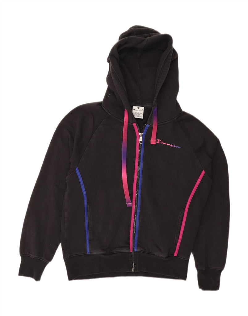 CHAMPION Womens Oversized Zip Hoodie Sweater UK 10 Small Black Cotton