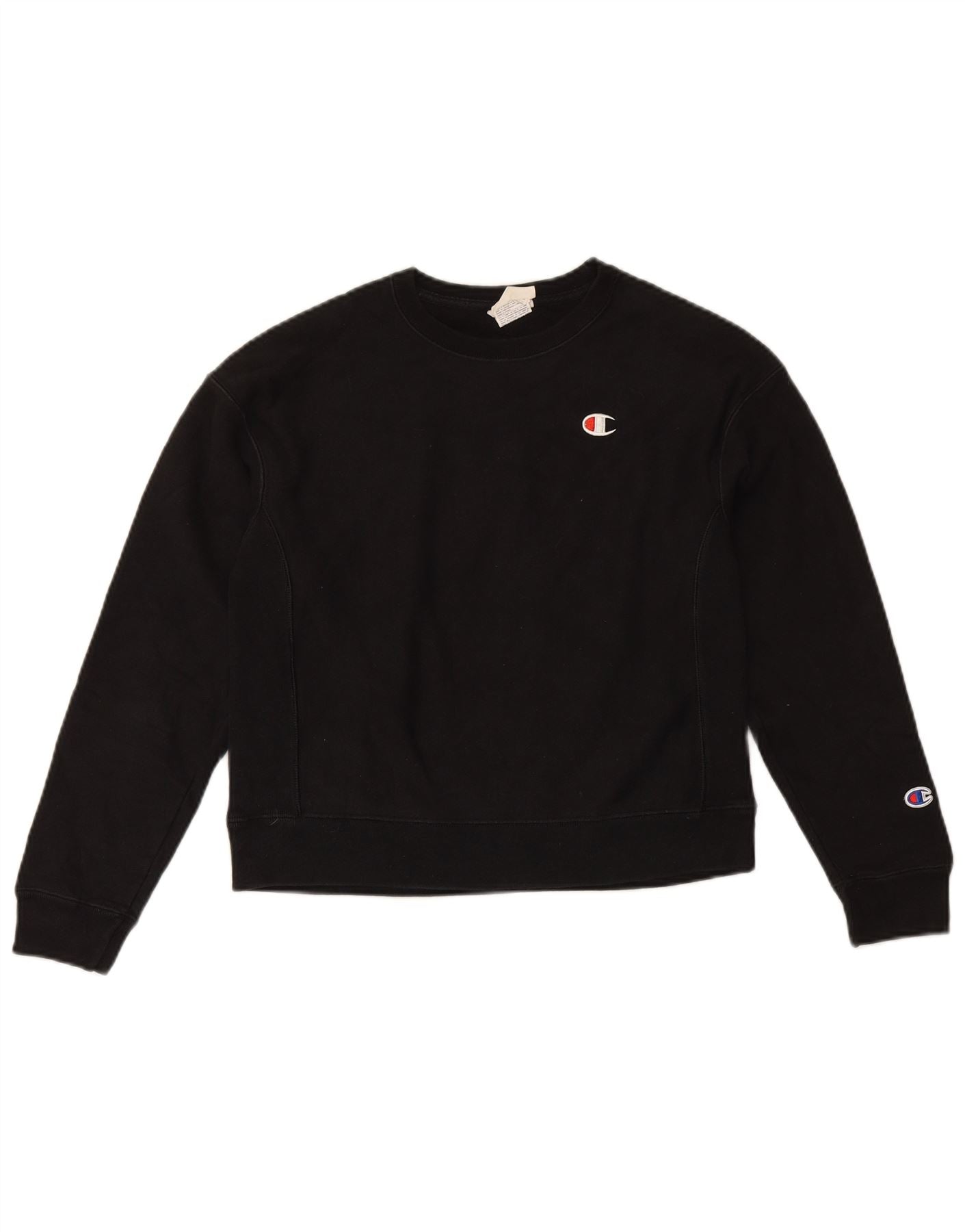 Champion Damen Reverse Weave Sweatshirt Pullover UK 10 Small Schwarz Baumwolle