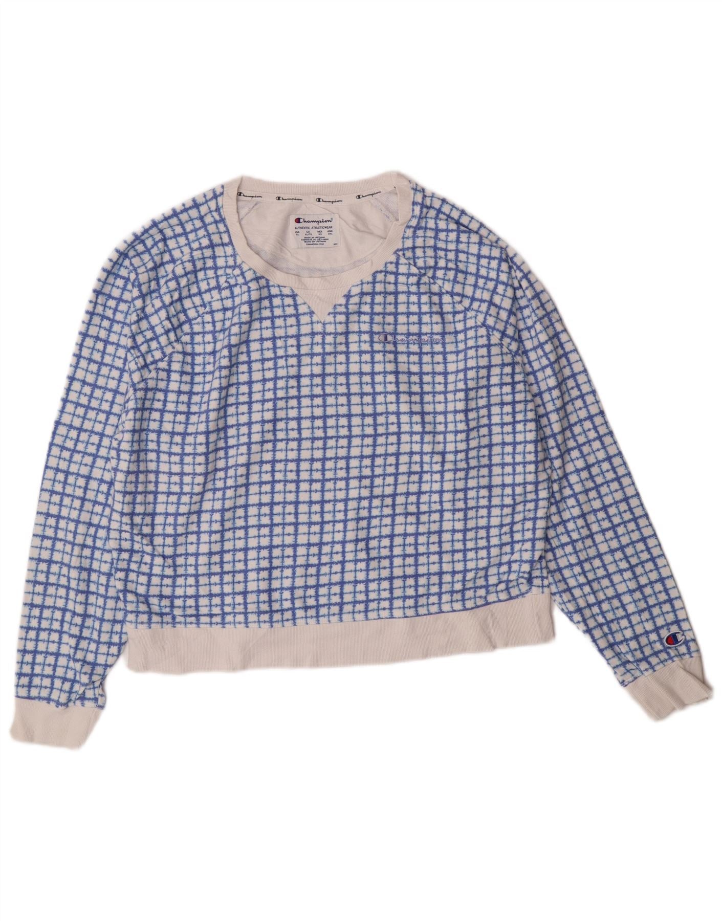 Champion Damen-Sweatshirt-Pullover, UK 18, XL, blau kariert, Baumwolle