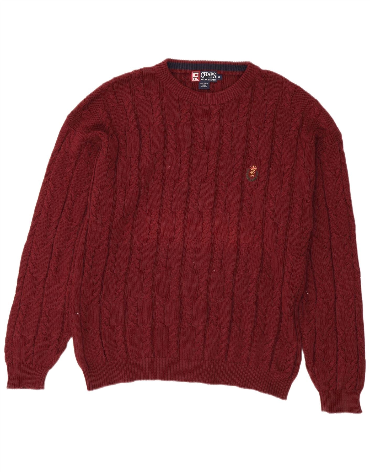 CHAPS RALPH LAUREN Herren-Pullover mit Rundhalsausschnitt, XL, burgunderrote Baumwolle